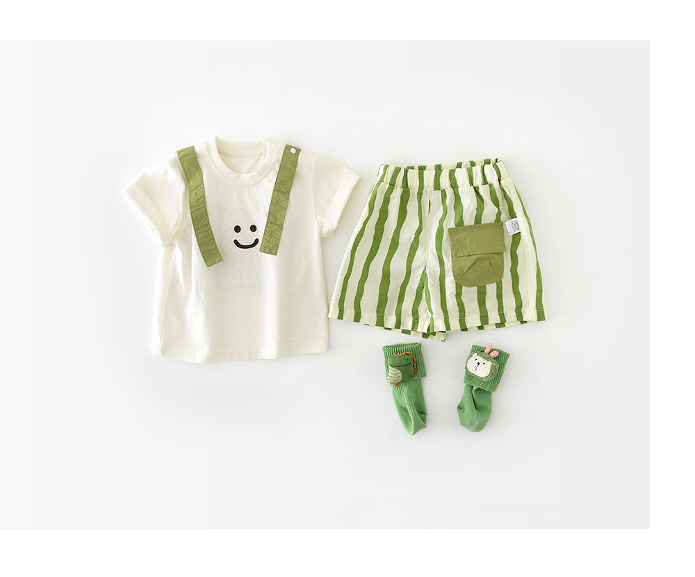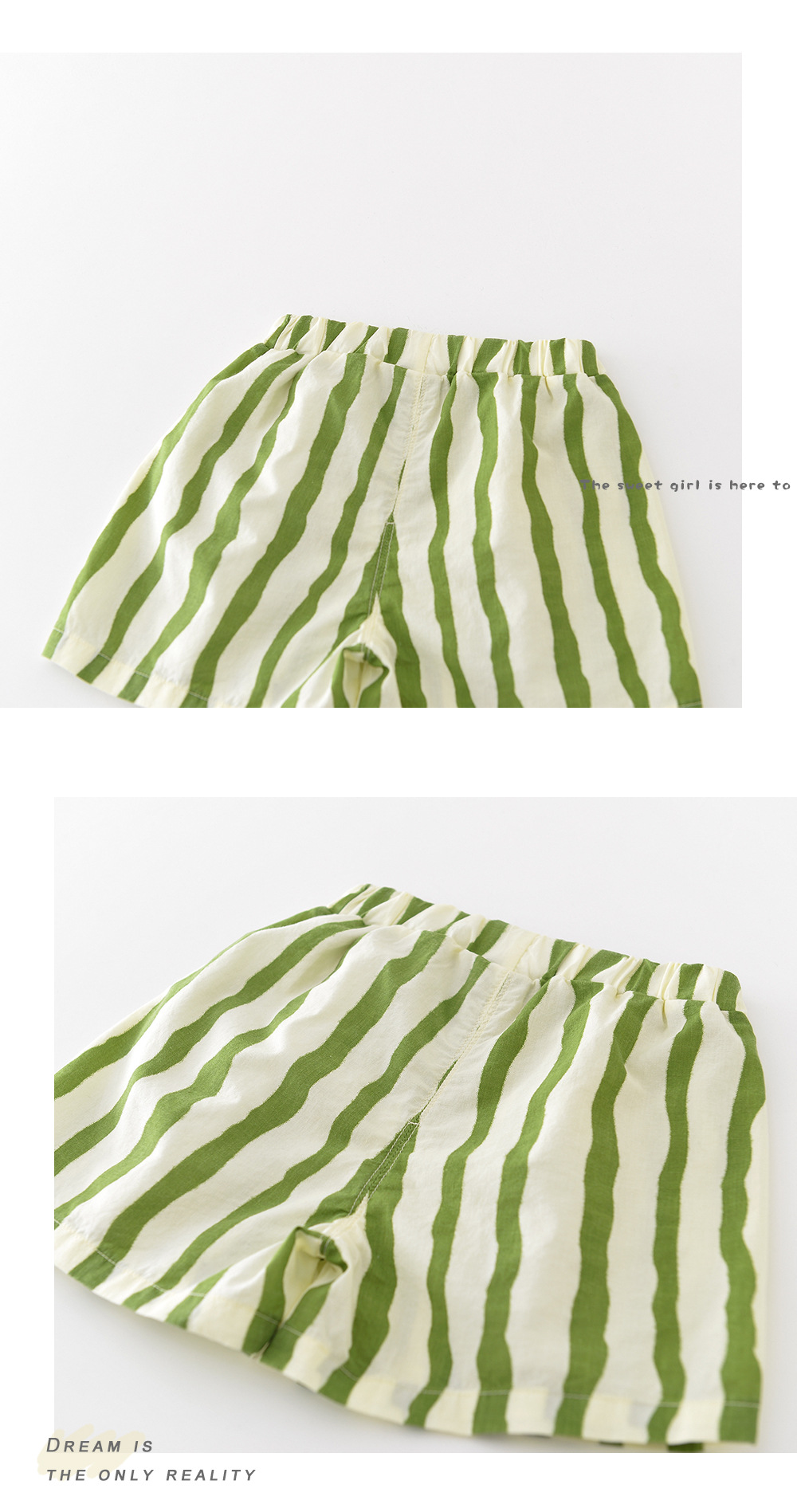 2025 년 여름 새 어린이 줄무늬 반바지 아기 유아 툴링 스테레오 포켓 중간 허리 바지 52047스토어 가기