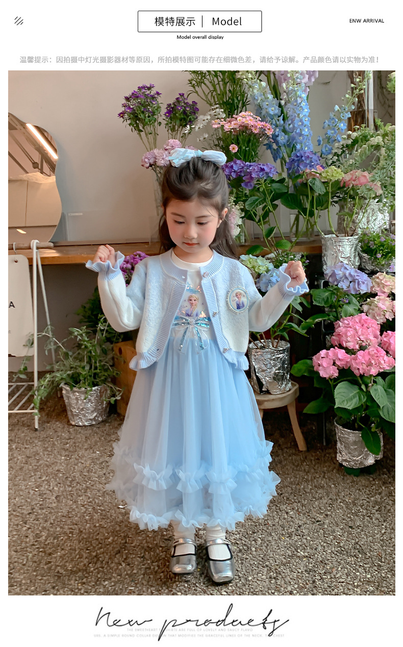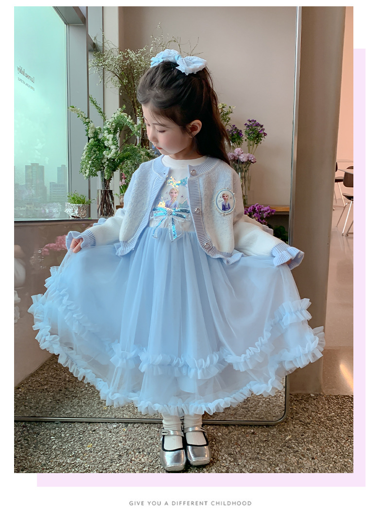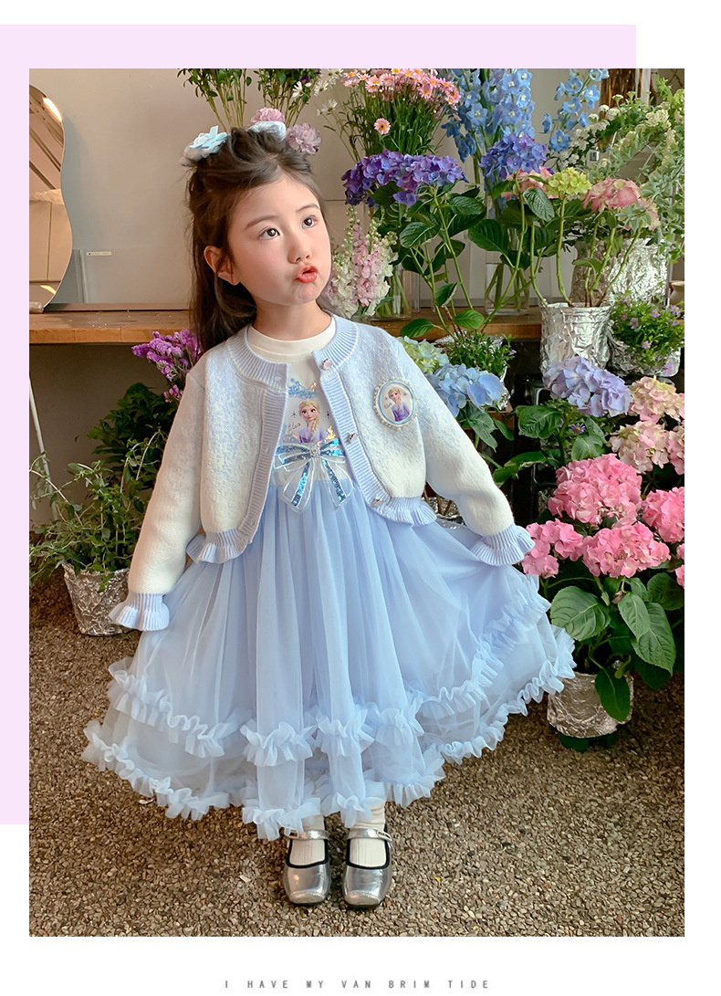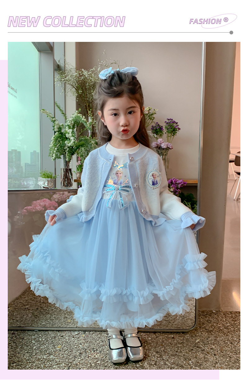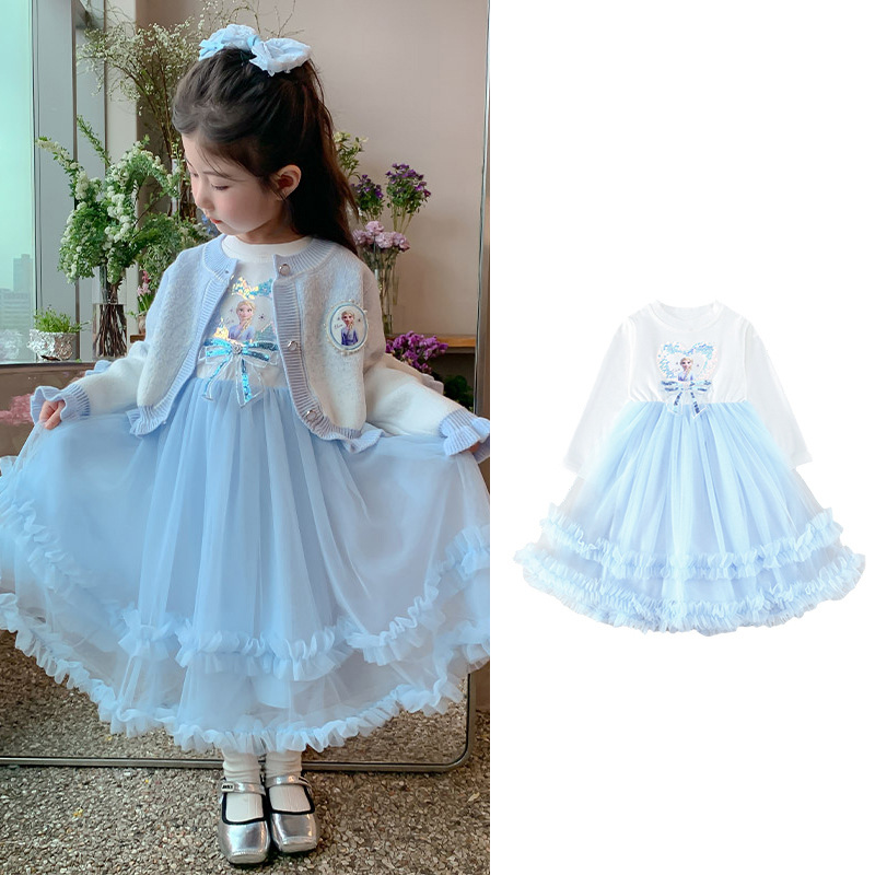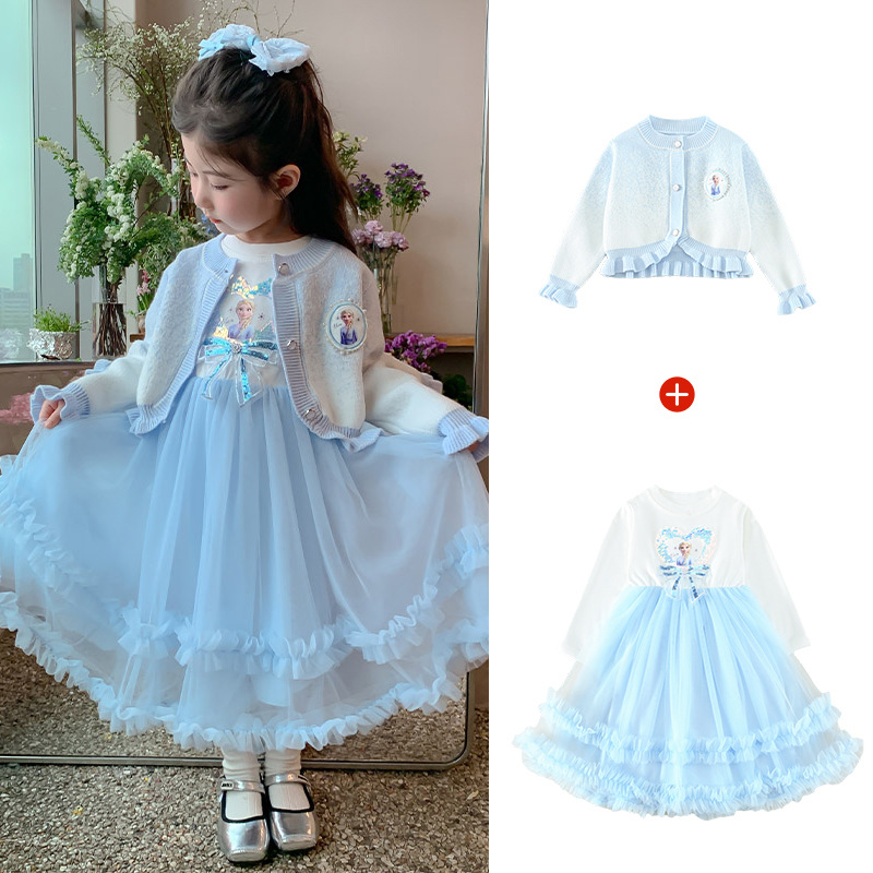 소녀 원피스 봄과 가을 2025 새로운 어린이 봄 공주 엘사 원피스 어린이 봄 원피스 투피스 세트