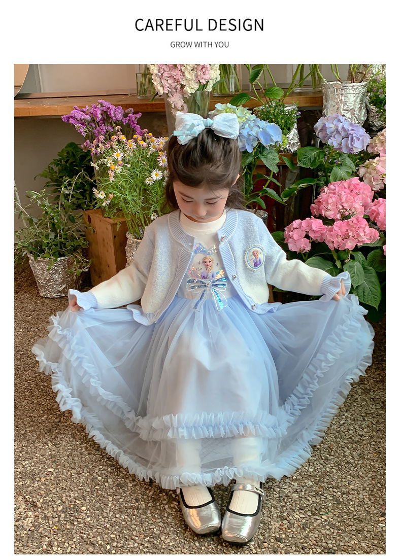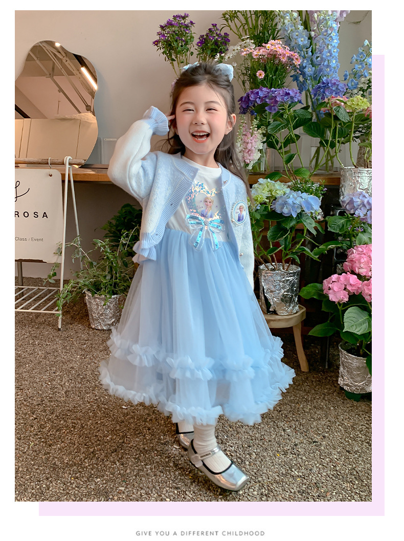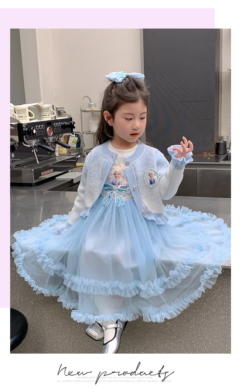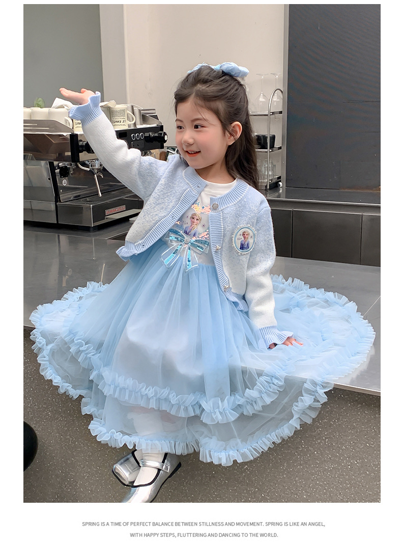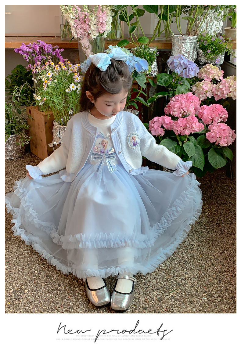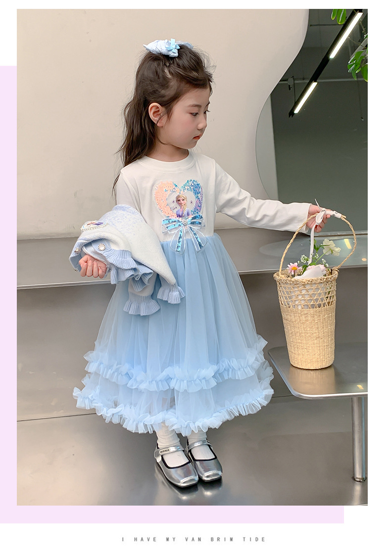 소녀 원피스 봄과 가을 2025 새로운 어린이 봄 공주 엘사 원피스 어린이 봄 원피스 투피스 세트