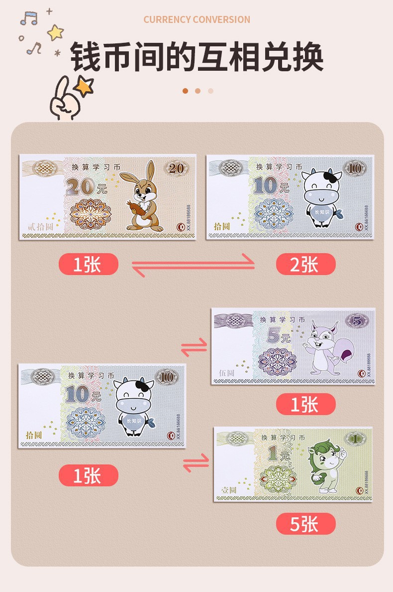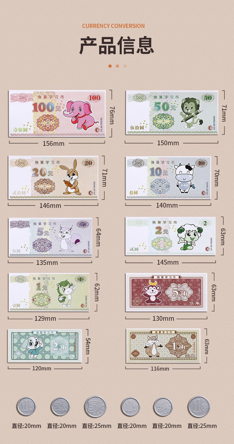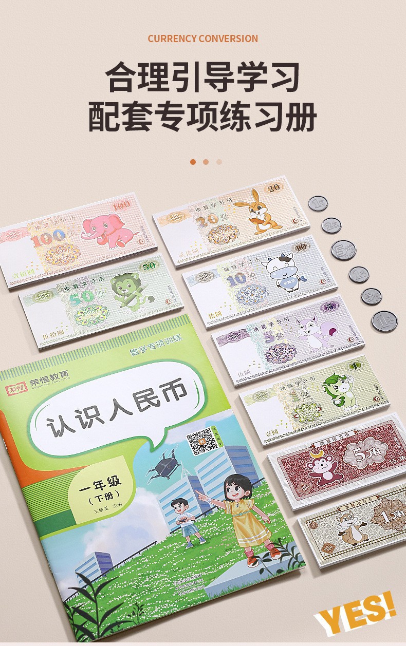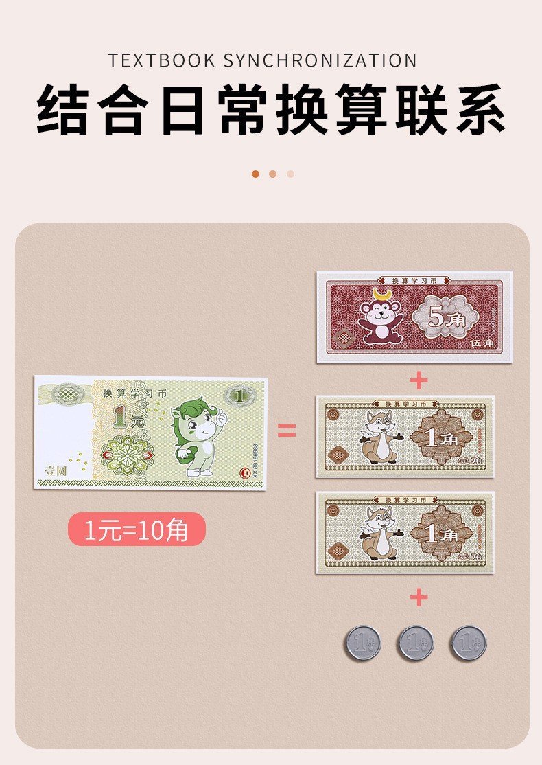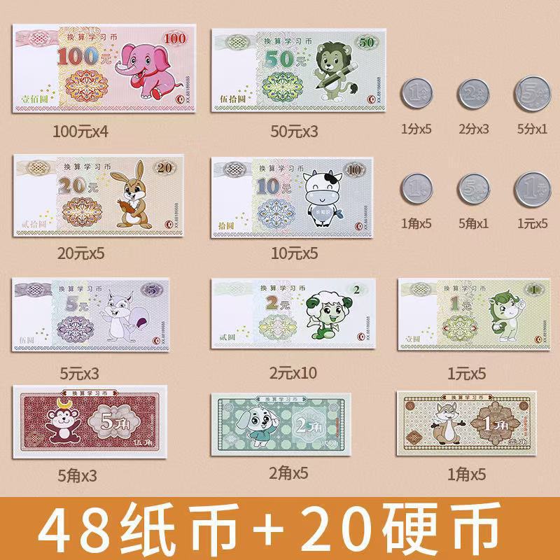 위안화 학습 도구의 수학적 시뮬레이션 이해 Yuan Jiao 포인트 어린이 종이 통화 및 동전 교육 인식 세트 1 학년과 2 학년스토어 가기