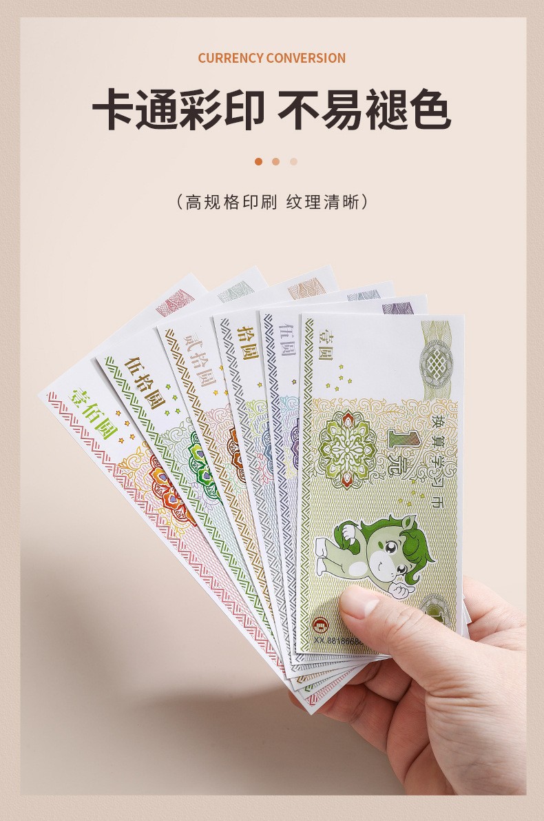 위안화 학습 도구의 수학적 시뮬레이션 이해 Yuan Jiao 포인트 어린이 종이 통화 및 동전 교육 인식 세트 1 학년과 2 학년