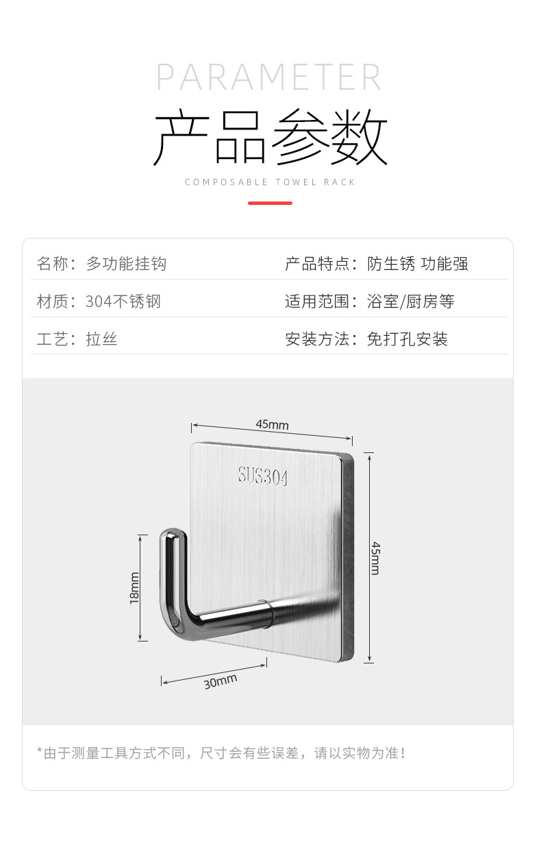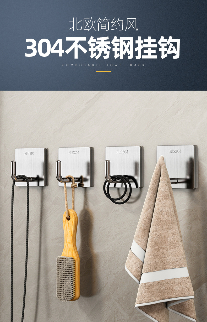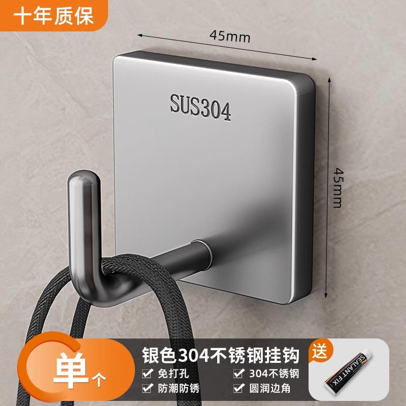 304 스테인레스 스틸 후크 비스코스 하중지지 펀치없는 욕실 주방 문 벽걸이 타월 후크 싱글 후크
