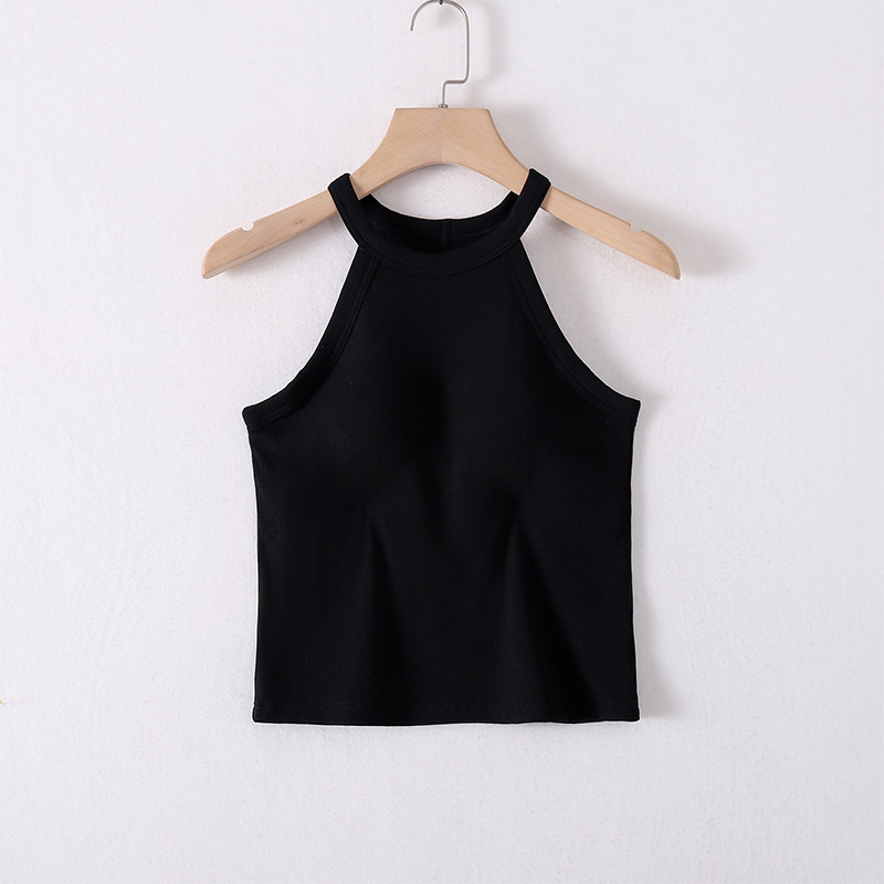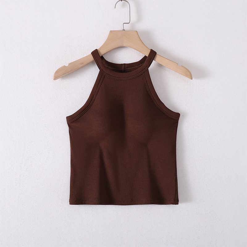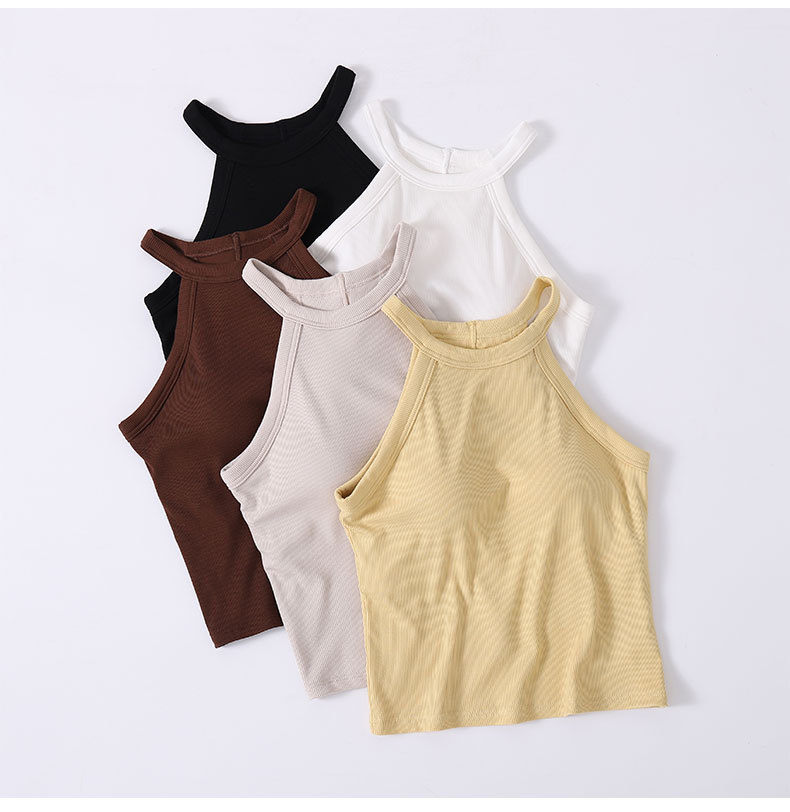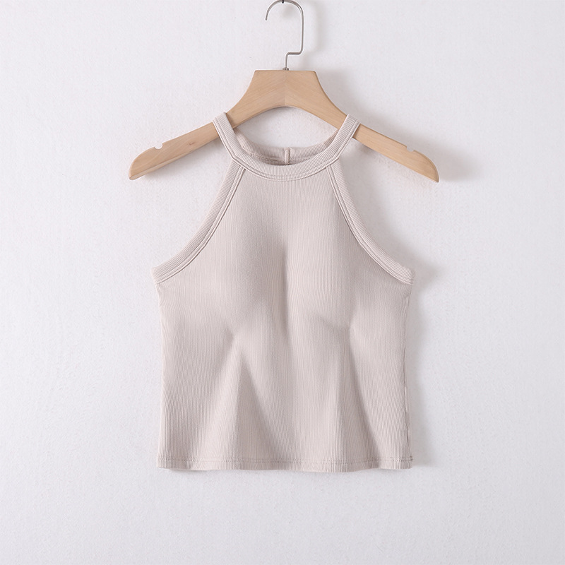 아이스 실크 패드 내장 슬리브리스 여성용 슬림핏 이너웨어 홀터넥 탑 얇은 아이스감