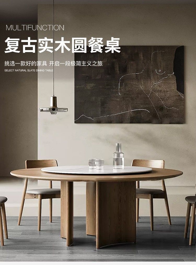 북유럽 솔리드 우드 원탁 가구 라운드 식탁 가정용 식탁-일본식 식탁 라운드 현대 명품스토어 가기