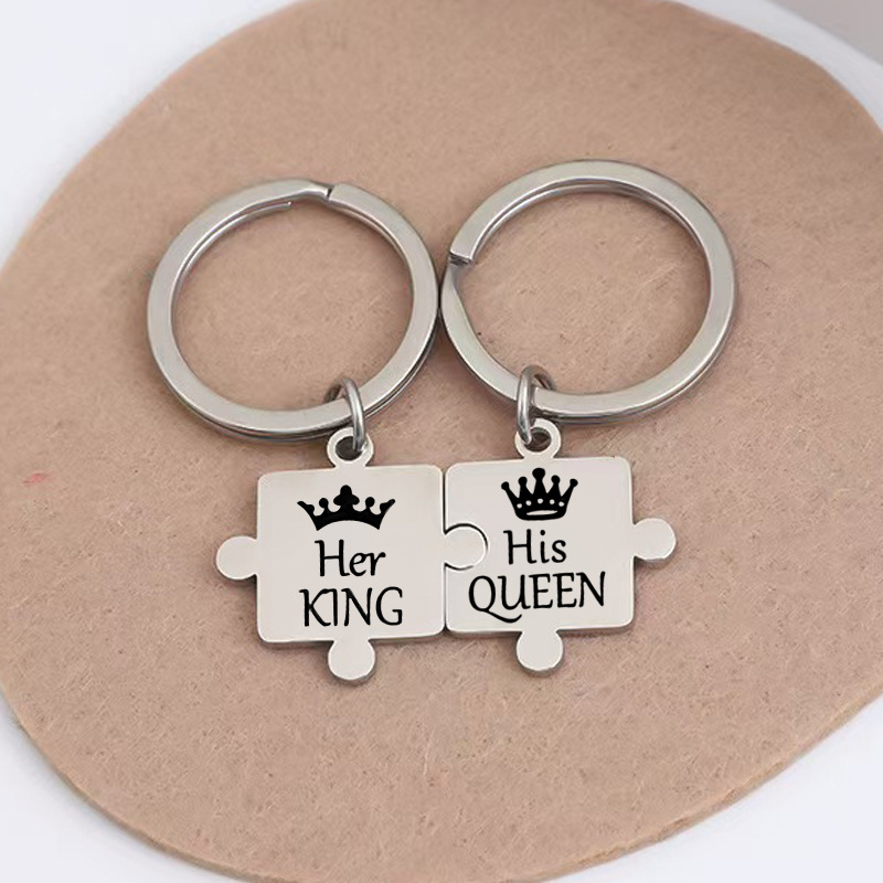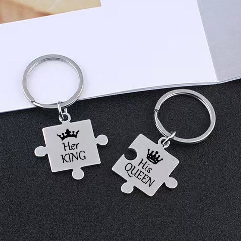 아마존 커플 키 체인 맞춤형 퍼즐 키 체인 킹 퀸 발렌타인 데이 선물 웨딩 선물