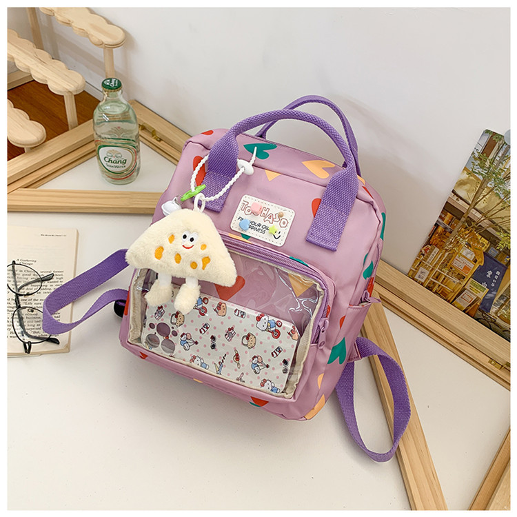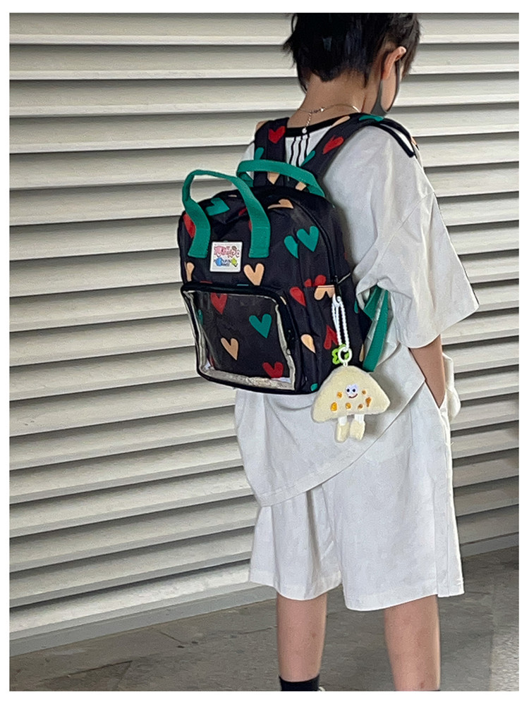 투명한 복숭아 심장 인쇄 유치원 소년 학교 가방 서양 스타일 2025 초등학생을위한 새로운 배낭 소녀 높은 색상 가치