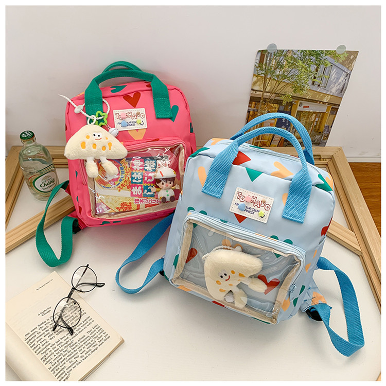 투명한 복숭아 심장 인쇄 유치원 소년 학교 가방 서양 스타일 2025 초등학생을위한 새로운 배낭 소녀 높은 색상 가치스토어 가기