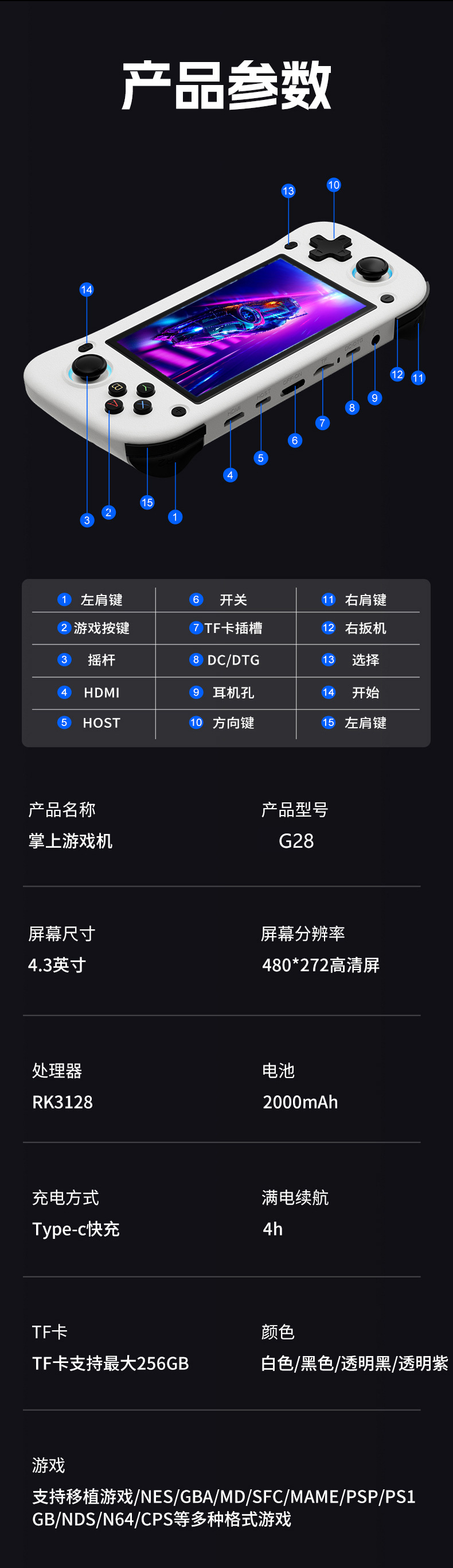 새로운 휴대용 게임 콘솔 G28 국내 중국 휴대용 PSP 오픈 소스 휴대용 ROG 향수 아케이드 제조 업체