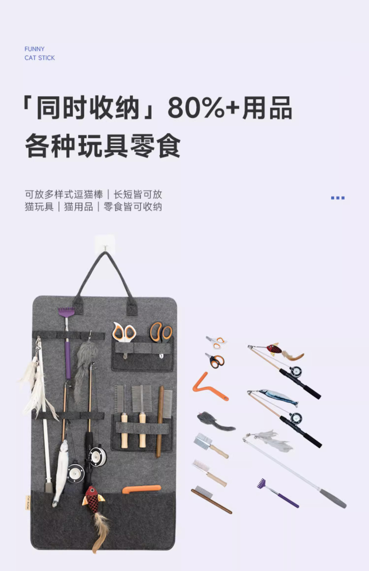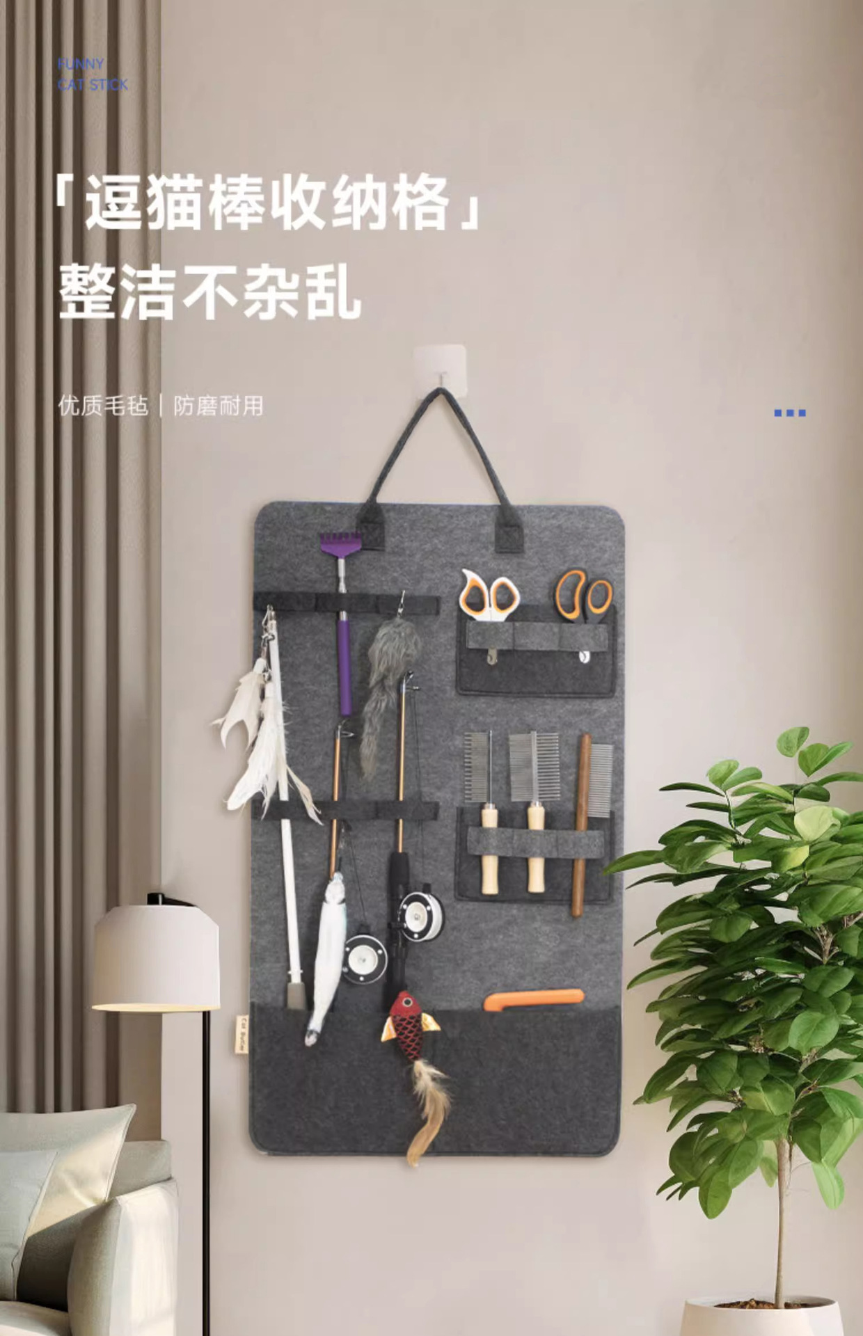재미 있은 고양이 스틱 보관 가방 벽 교수형 고양이 장난감 보관 가방 애완 동물 용품 고양이 빗 보관 교수형 가방 대용량스토어 가기