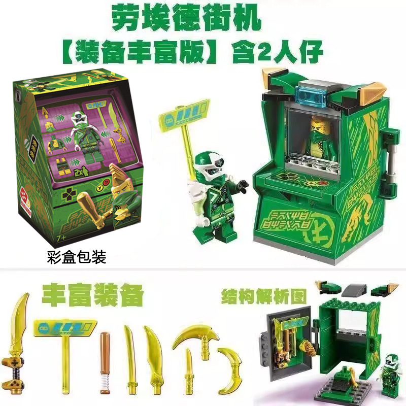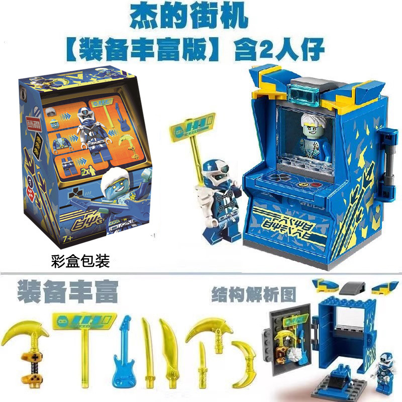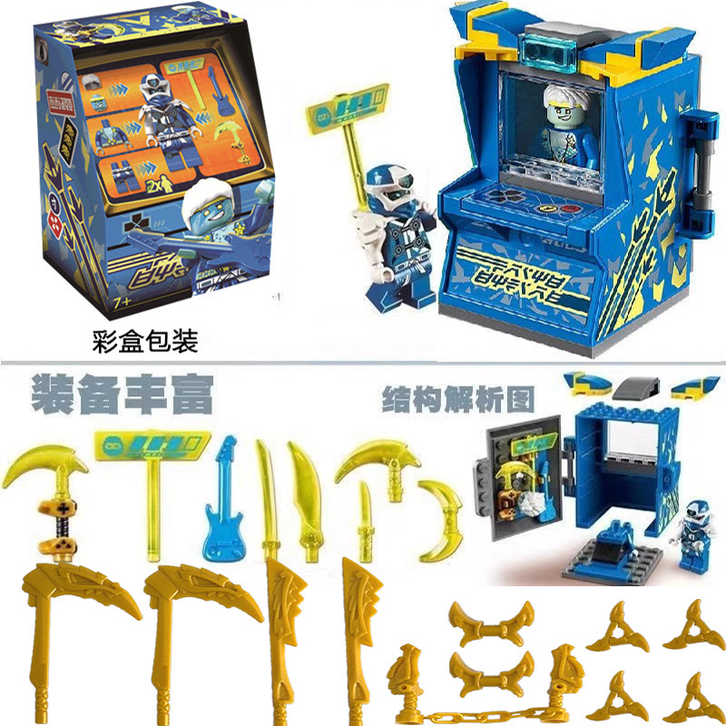 • 무기를 갖춘 Jie Arcade 미니피겨 2개 + 황금 무기 풀 세트