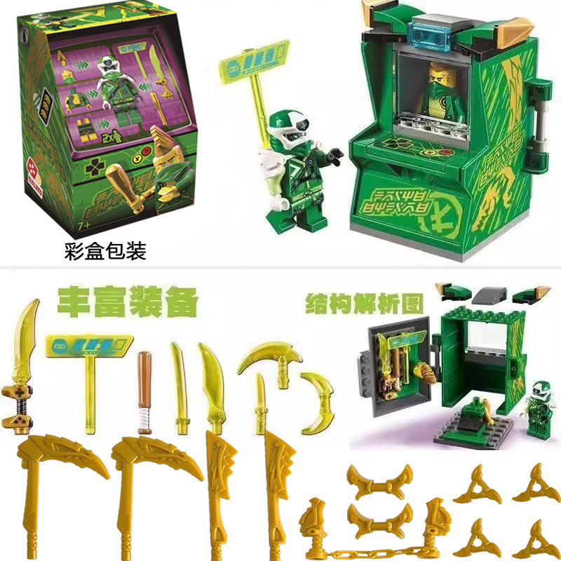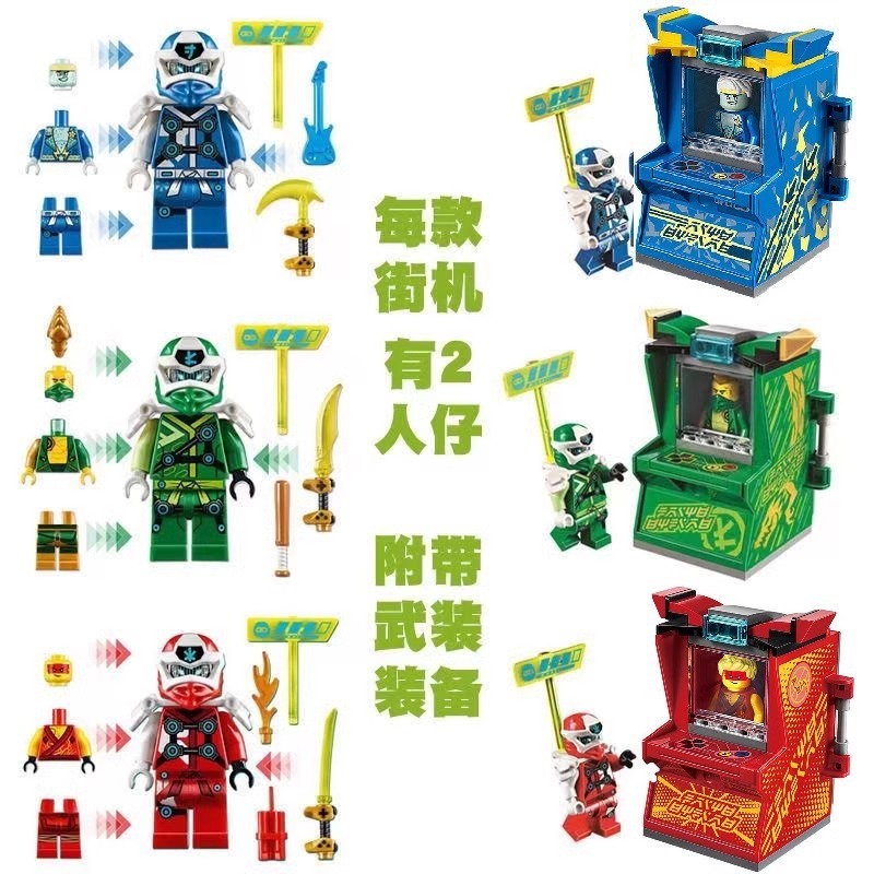 • 무기 + 황금 무기를 갖춘 미니피겨 6개로 구성된 세 가지 아케이드 조합