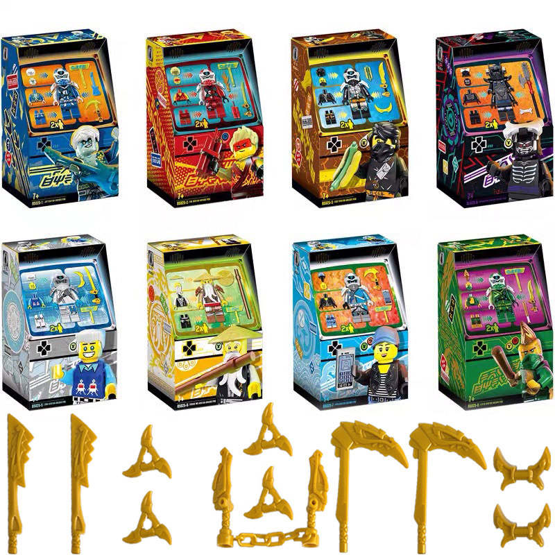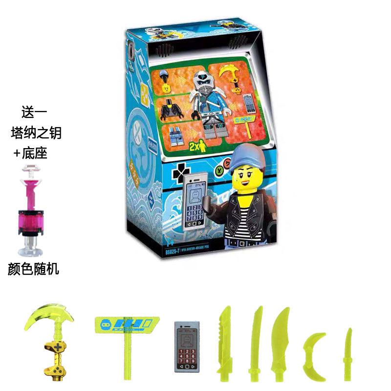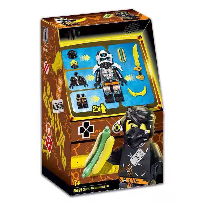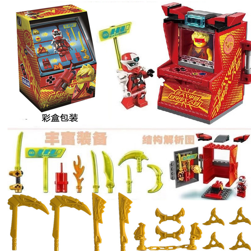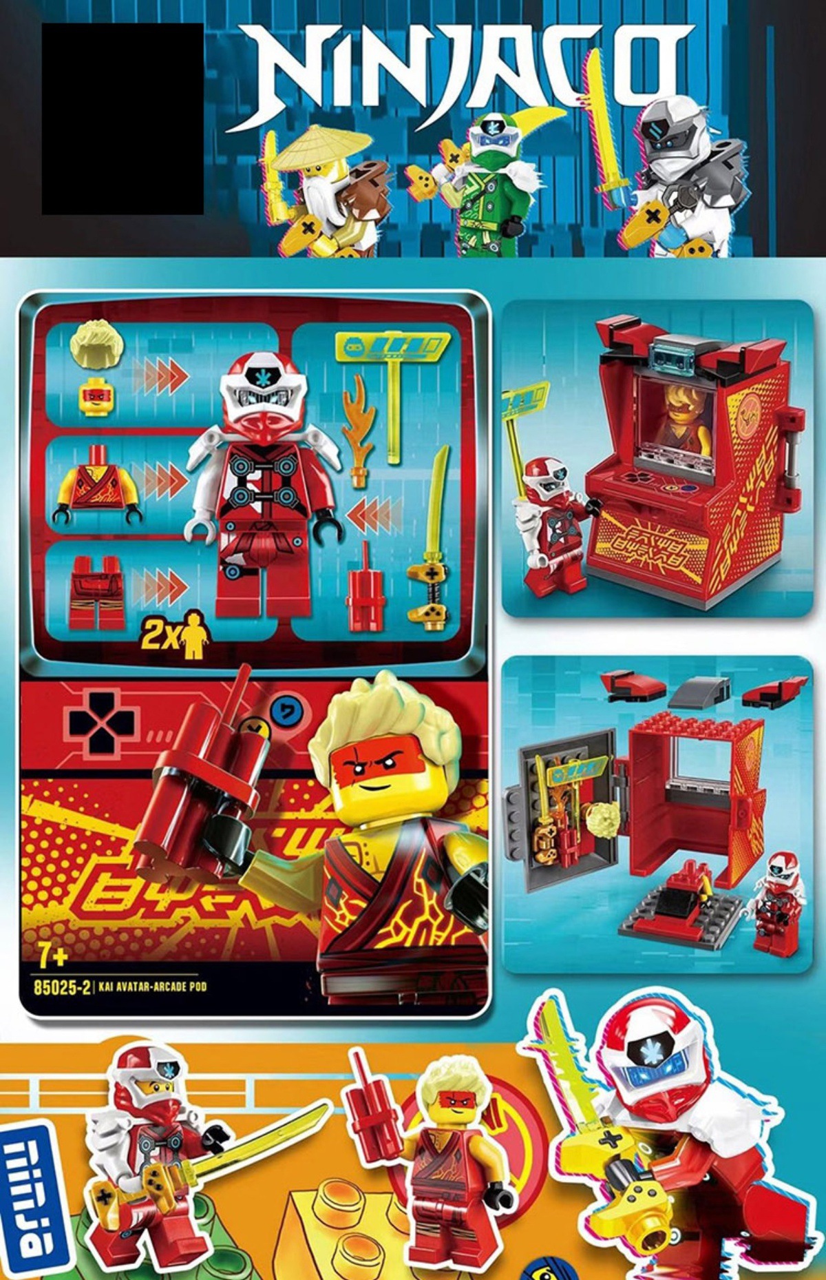 • 무기를 포함한 Kai Arcade 미니피겨 2개 + 황금 무기 풀 세트