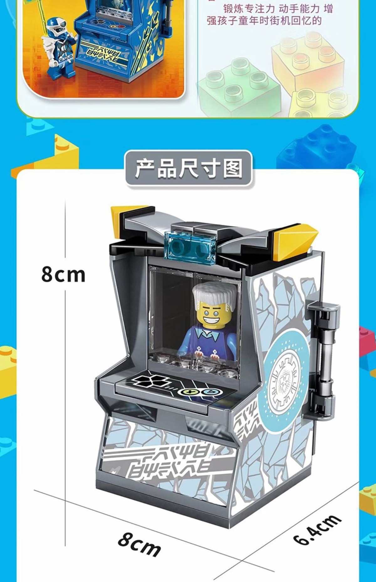 • 무기와 선물이 없는 미니피겨 16개를 포함한 8개의 아케이드 조합
