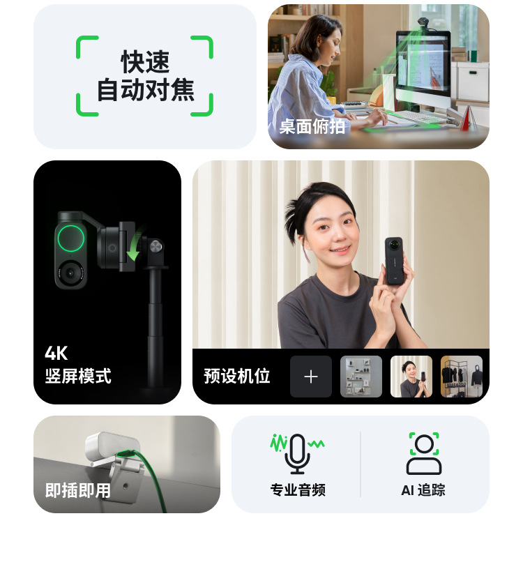 [신제품 상장] Yingshi Insta360 링크 2 & Link 2C AI 지능형 4K 라이브 방송 카메라