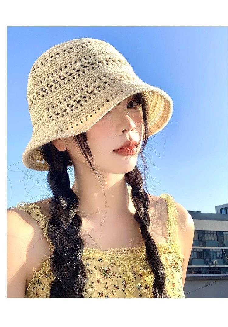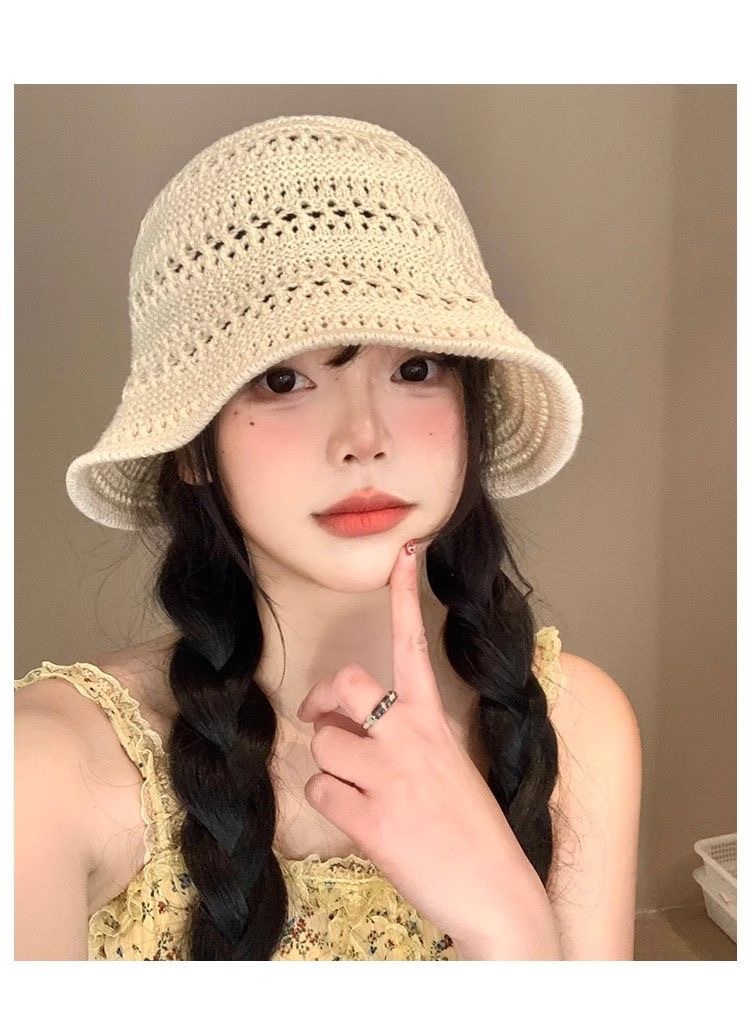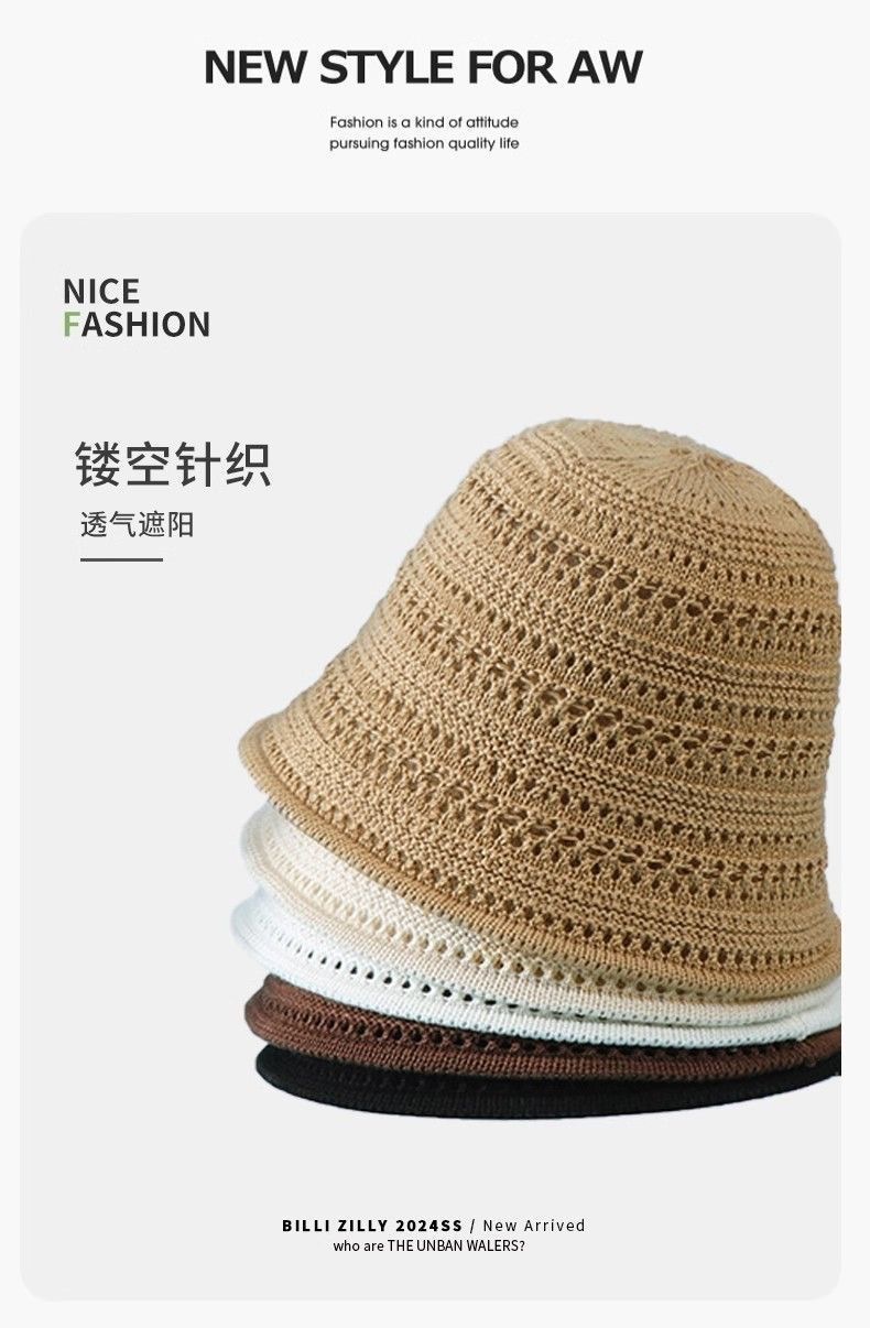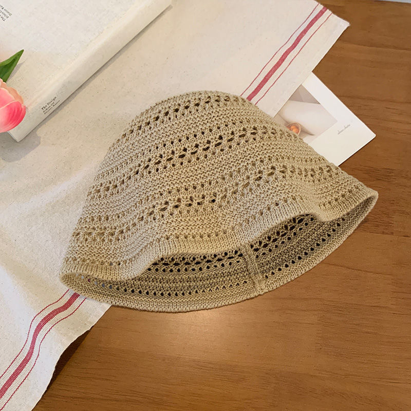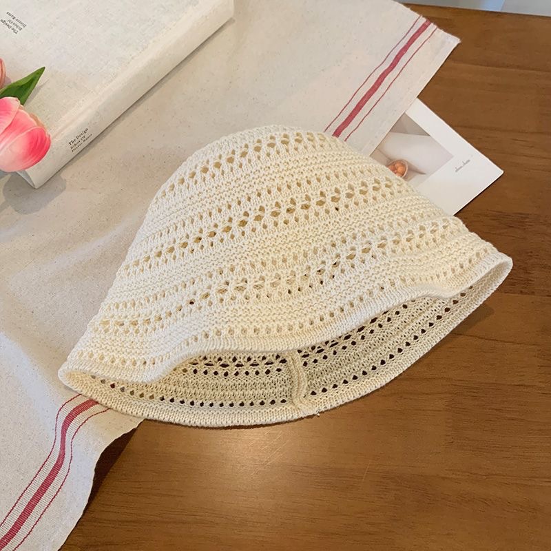 일본식 솔리드 컬러 니트 할로우 어부 모자 어린이 봄과 여름 새로운 통기성 선 스크린 모자 UV 보호 태양 모자