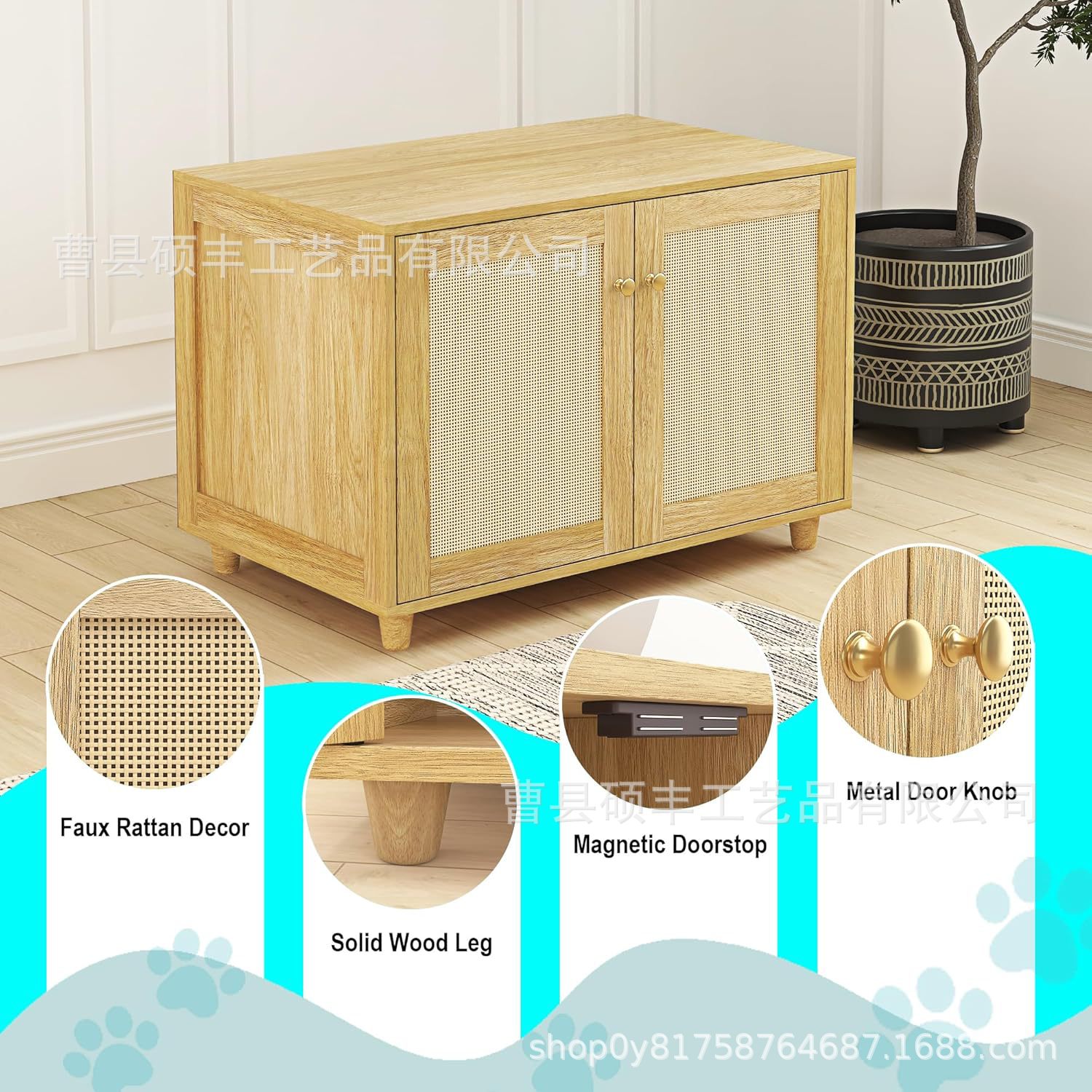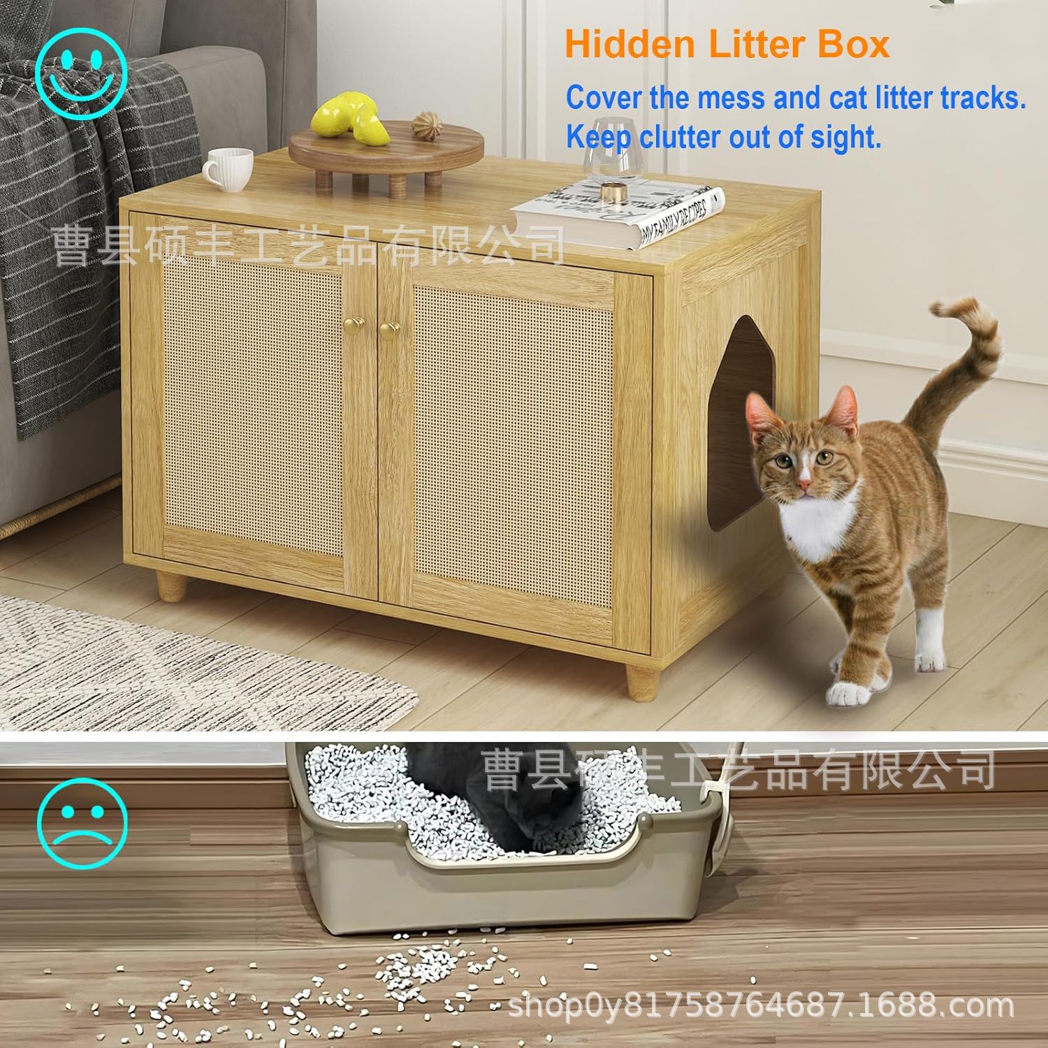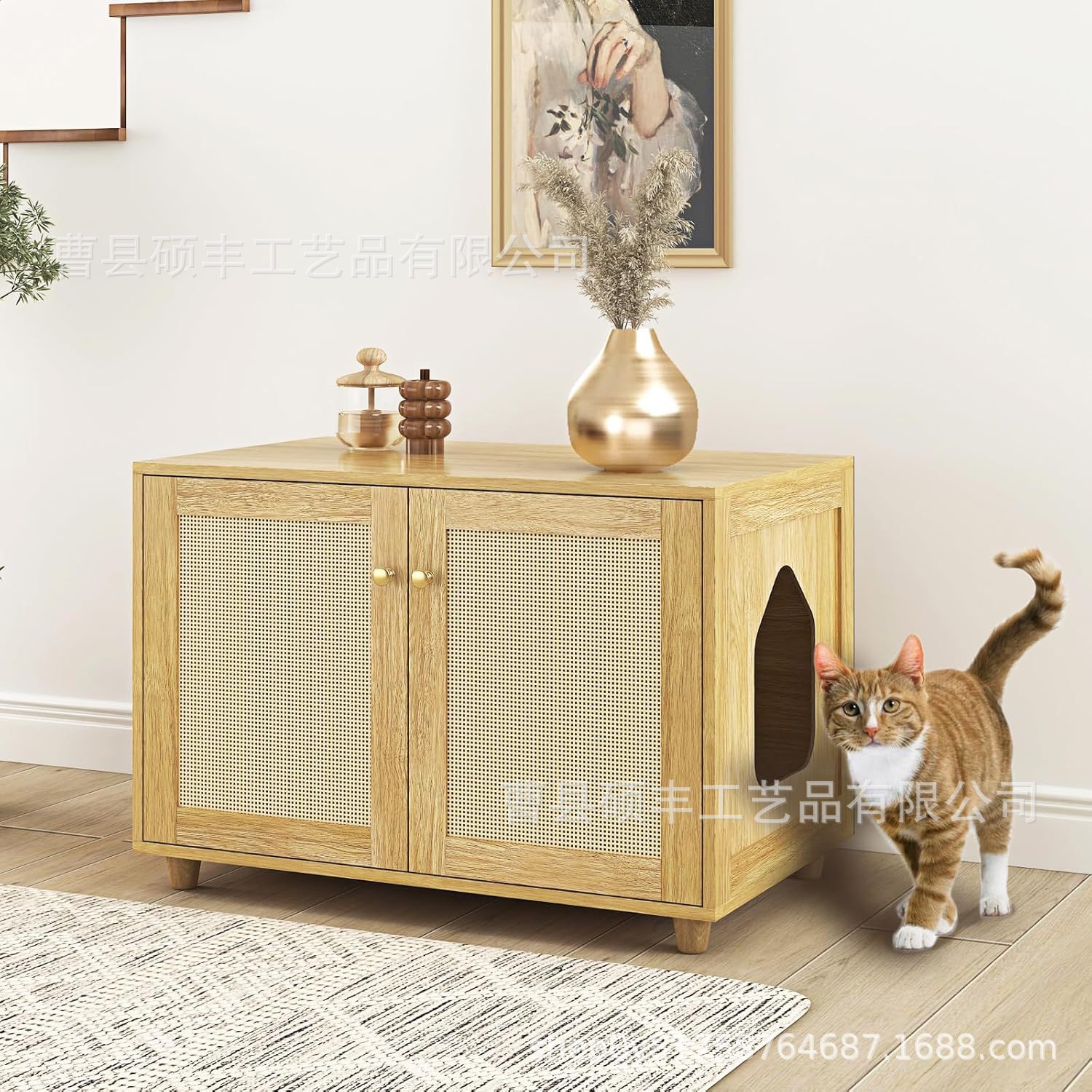 공장 직접 공급 등나무 숨겨진 고양이 쓰레기 상자 거실 TV 캐비닛 다기능 보관 캐비닛 나무 애완 동물 집스토어 가기