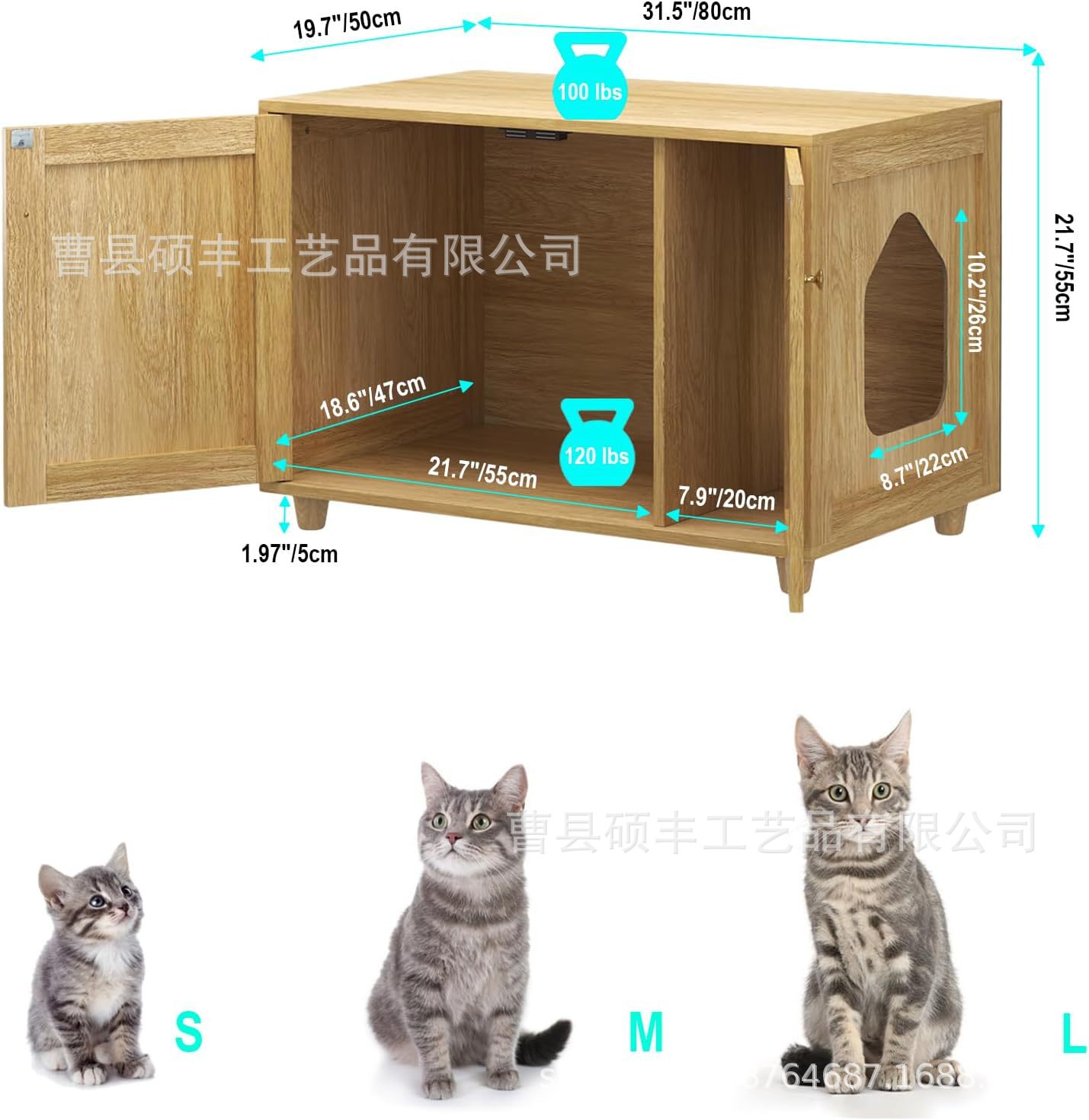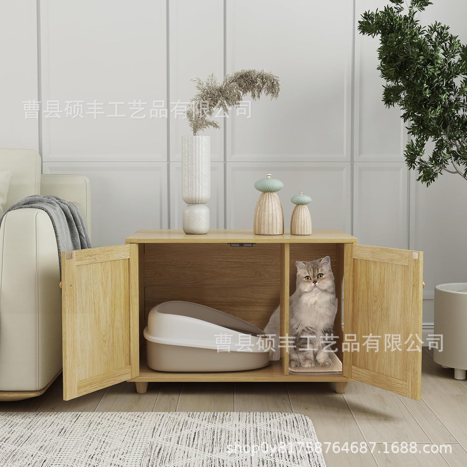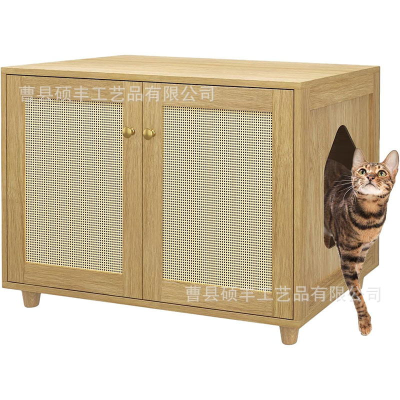 공장 직접 공급 등나무 숨겨진 고양이 쓰레기 상자 거실 TV 캐비닛 다기능 보관 캐비닛 나무 애완 동물 집스토어 가기