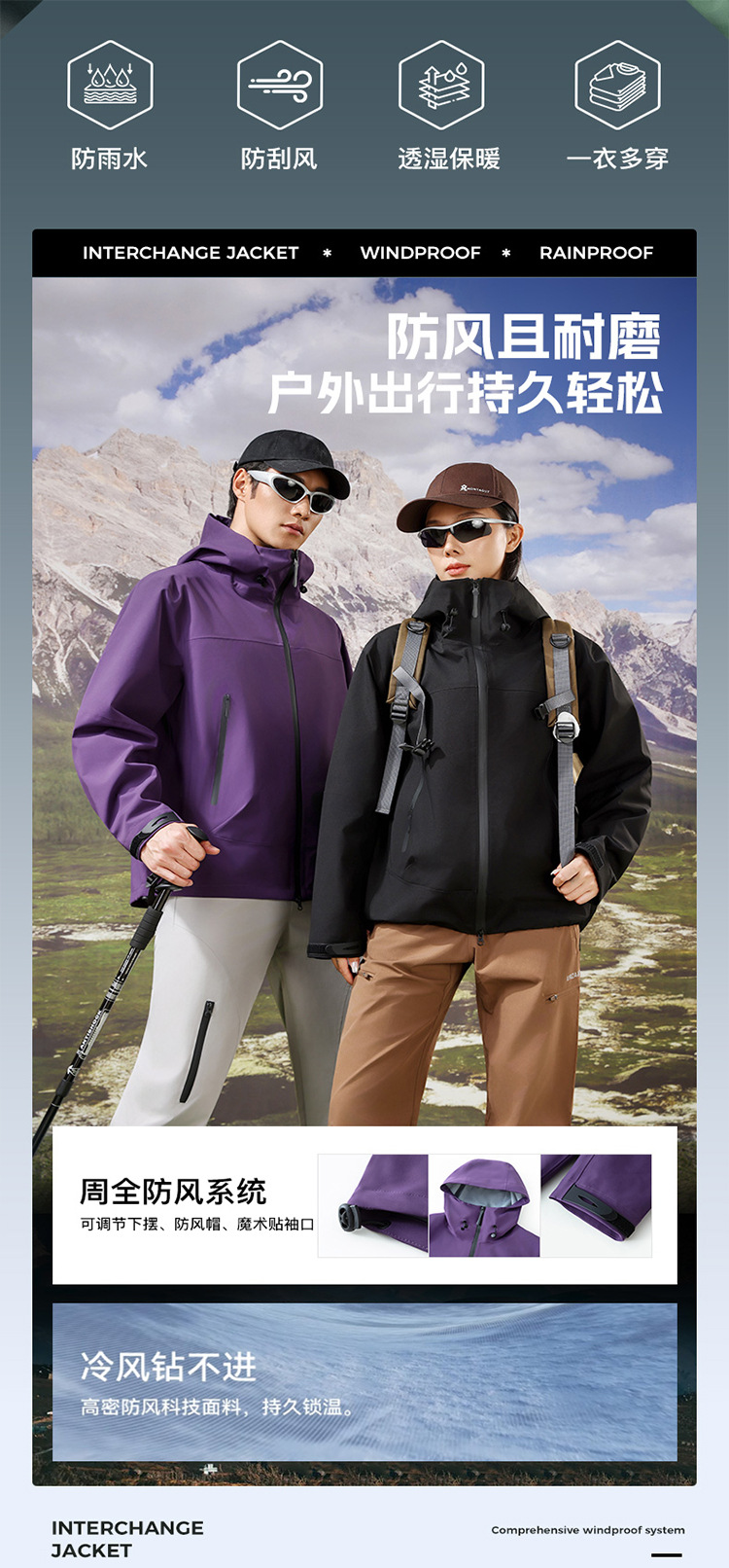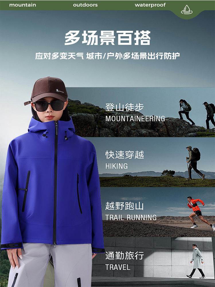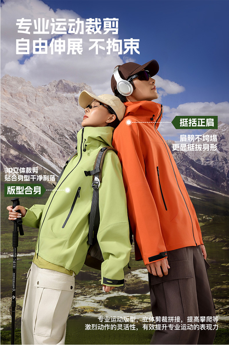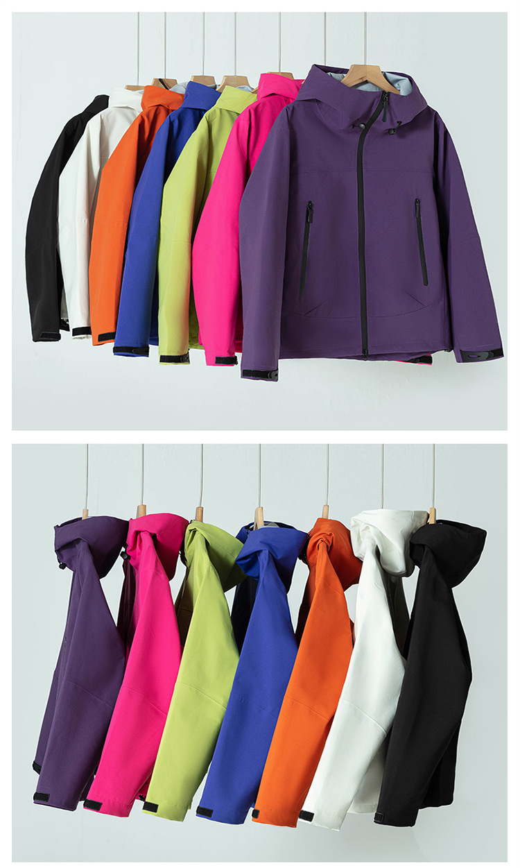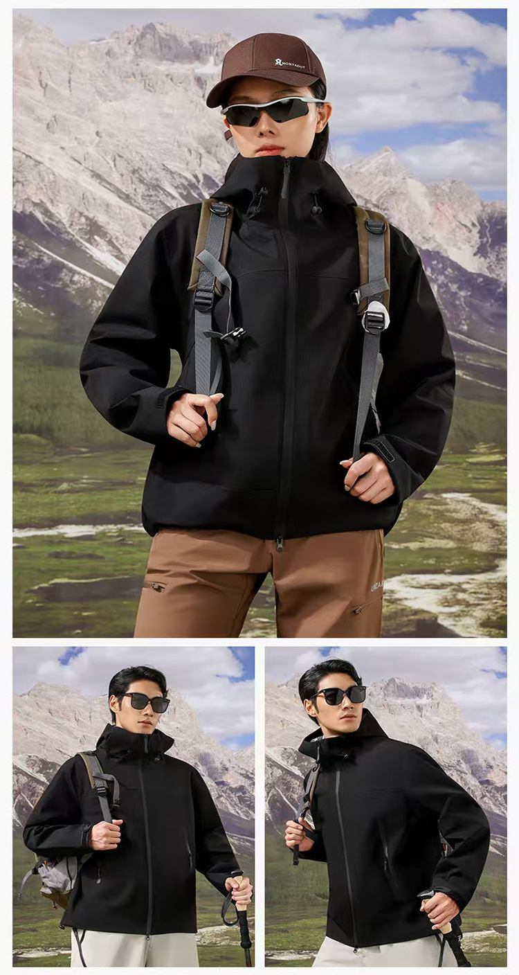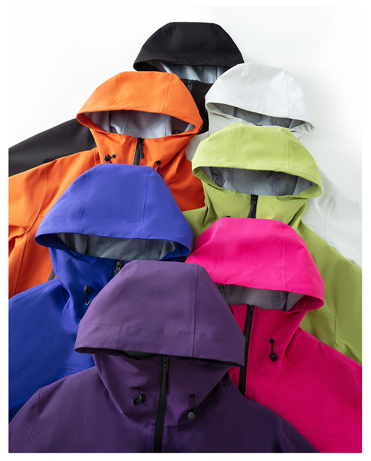 남성용 및 여성용 완전 열 밀봉 마운틴 재킷, 방풍 후드 싱글 레이어 재킷, 야외 등산 여행 재킷스토어 가기