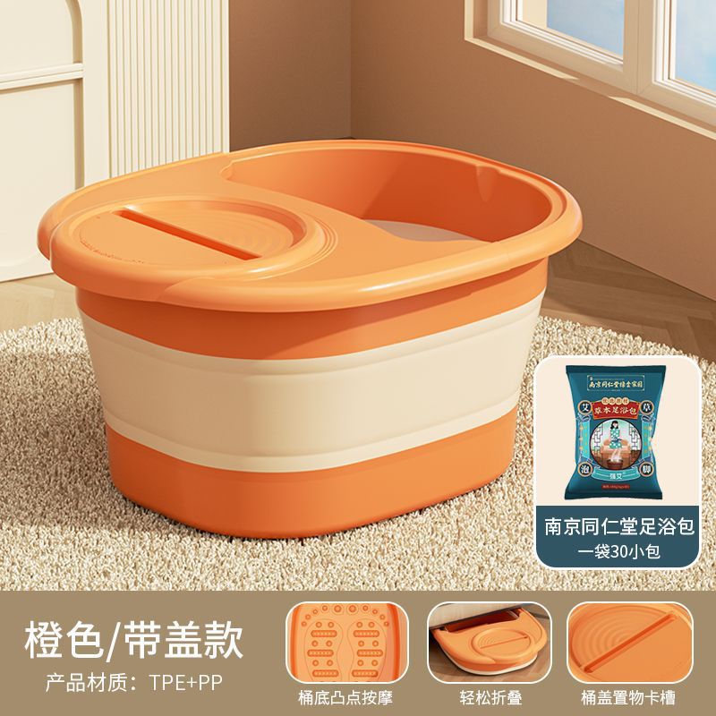 • 접이식 마사지 족욕통 [뚜껑포함] - 오렌지 + 난징통인탕 한방 족욕주머니 (60팩)