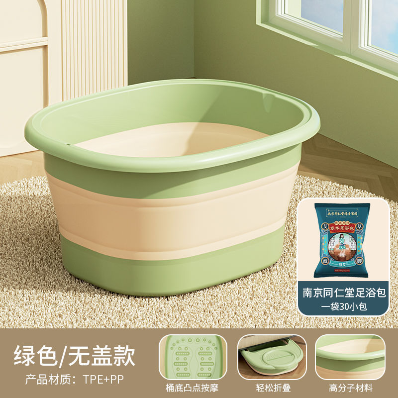 • 접이식 마사지 족욕통 [뚜껑 없음] - 그린 + 난징 통렌탕 한방 족욕 가방 (30개)