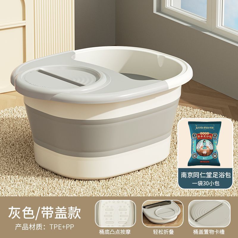 • 접이식 마사지 족욕통 [뚜껑 없음] - 회색 + 생강으로 몸을 따뜻하게 하고 냉기를 없애고 습기를 없애줍니다 (30팩)
