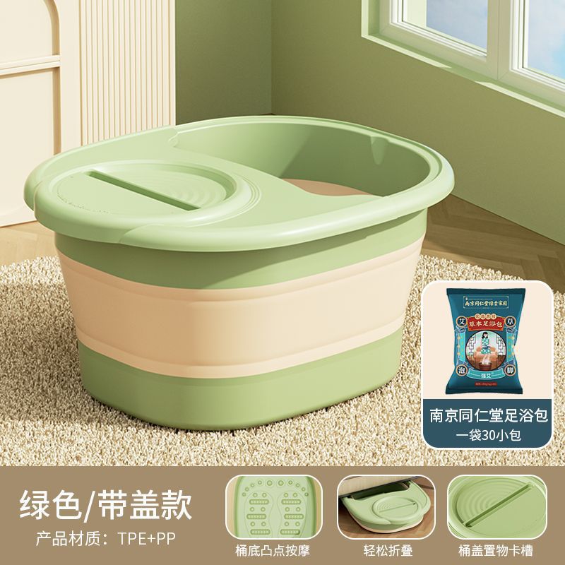 • 접이식 마사지 족욕통 [뚜껑 포함] - 그린 + 난징 통렌탕 한방 족욕 가방 (30개)