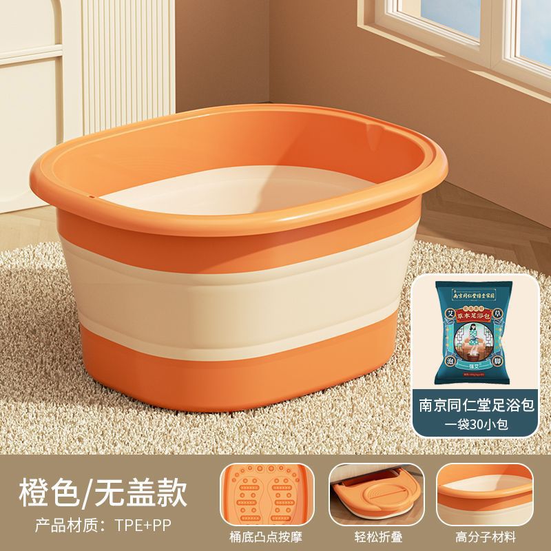 • 접이식 마사지 족욕통 [뚜껑 없음] - 오렌지 + 난징 통렌탕 한방 족욕봉지 (60팩)