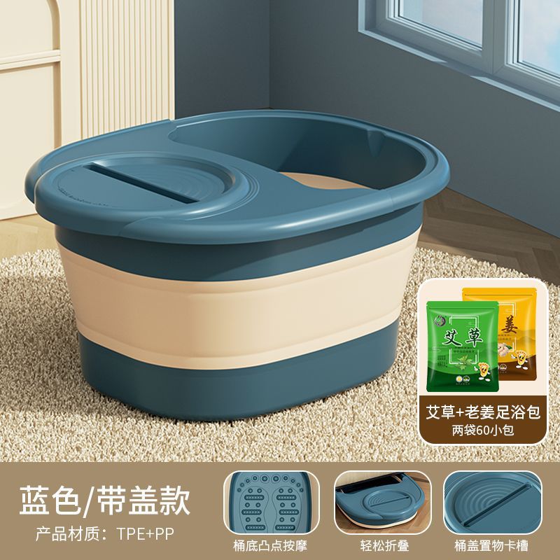 • 접이식 마사지 족욕통 [뚜껑포함] - 블루 + 생강으로 몸을 따뜻하게 하고 냉기를 없애며 습기를 없애줍니다 [30팩]