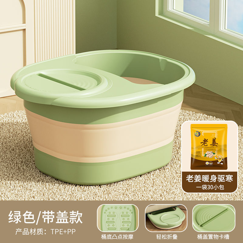 • 접이식 마사지 족욕통 [뚜껑포함] - 녹색 + 생강으로 몸을 따뜻하게 하고, 추위를 없애고, 제습 (30팩)