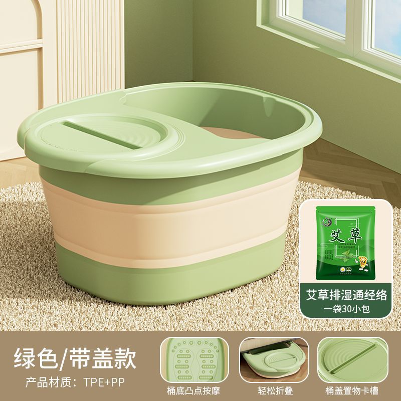 • 접이식 마사지 족욕통 [커버 포함] - 녹색 + 쑥 제습, 탁함, 경락 풀기 (30팩)