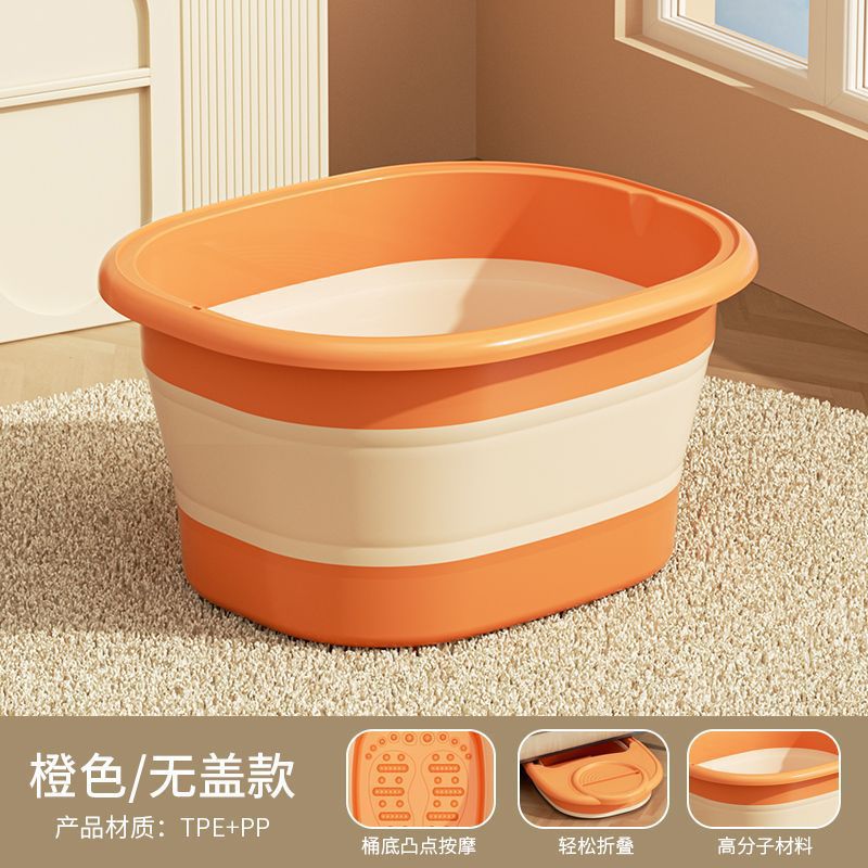 • 접이식 마사지 발 세척통 [커버 포함] - 오렌지색 [마사지 밑창]
