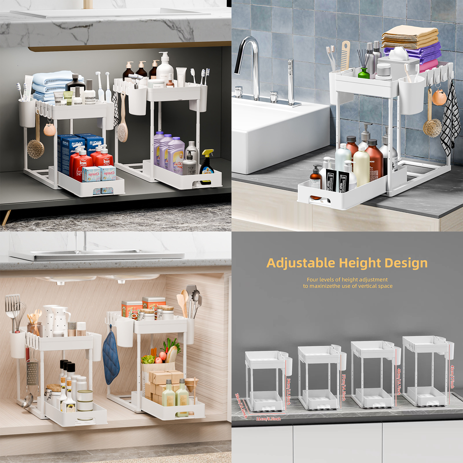 아마존 주방 다기능 스토리지 랙 높이 조정 가능한 스토리지 랙 낮은 싱크 스토리지 랙 풀아웃 선반