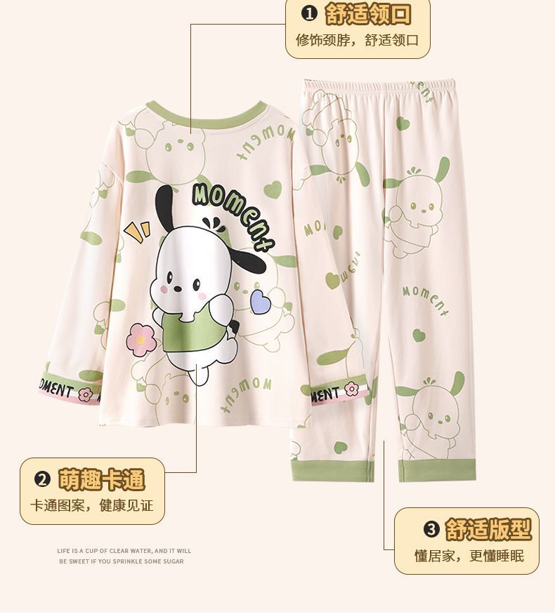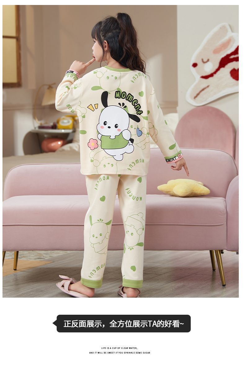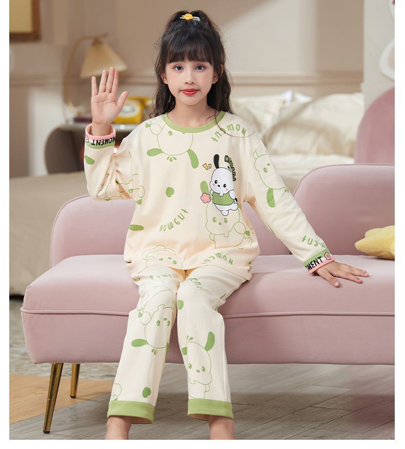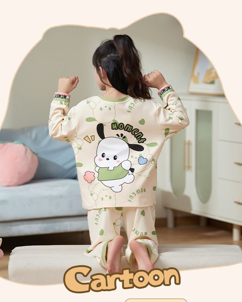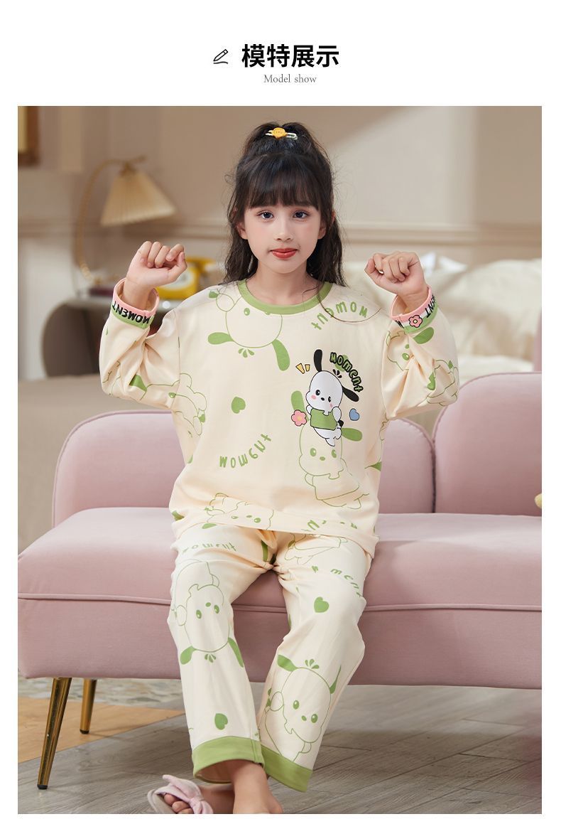 어린이 잠옷 봄과 가을 소녀 잠옷 세트 긴 소매 바지 라운드 넥 풀오버 홈웨어 만화 달콤한 큰 어린이스토어 가기