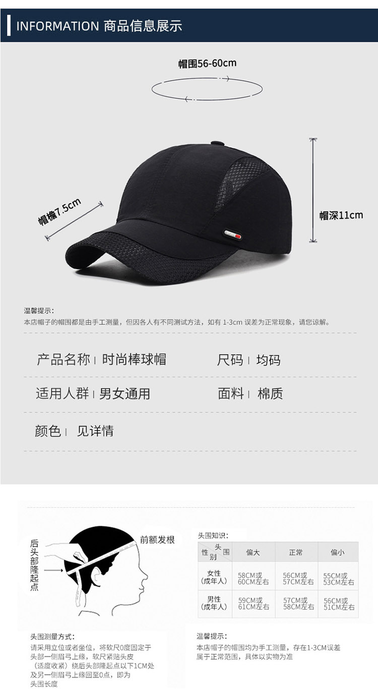 모자 봄과 여름 클래식 한국 빠른 건조 그물 모자 남녀 야외 태양 모자 스포츠 캐주얼 야구 모자스토어 가기