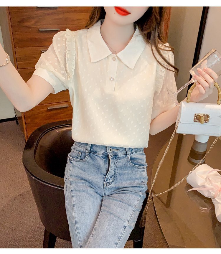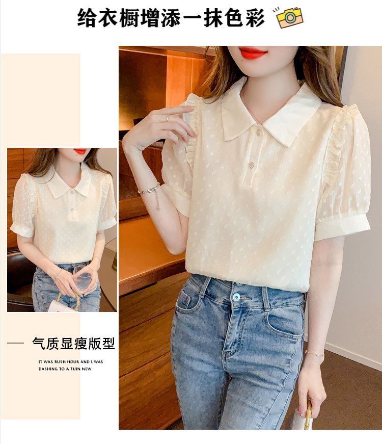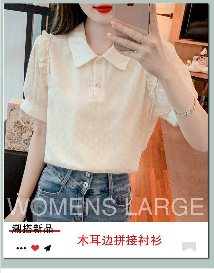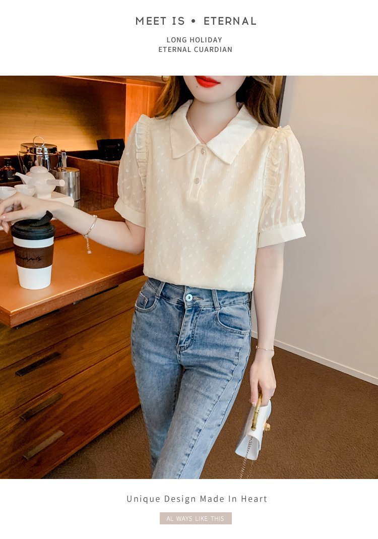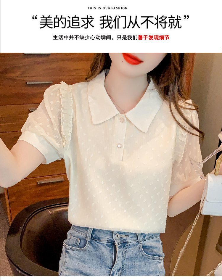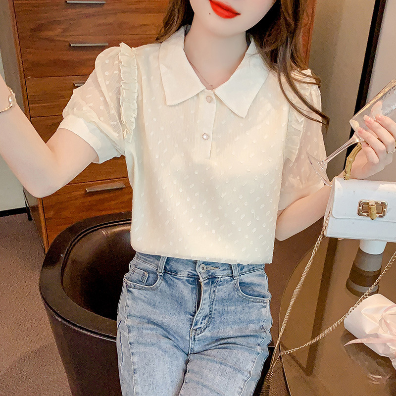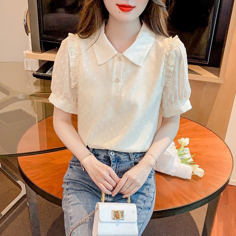 기질 폴로 칼라 짧은 소매 쉬폰 셔츠 여성 여름 2025 년 여름 새로운 디자인 감각 틈새 셔츠 탑