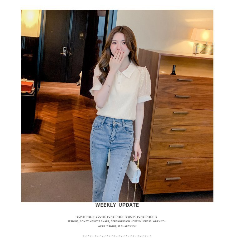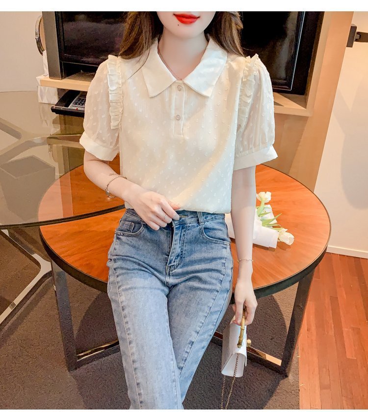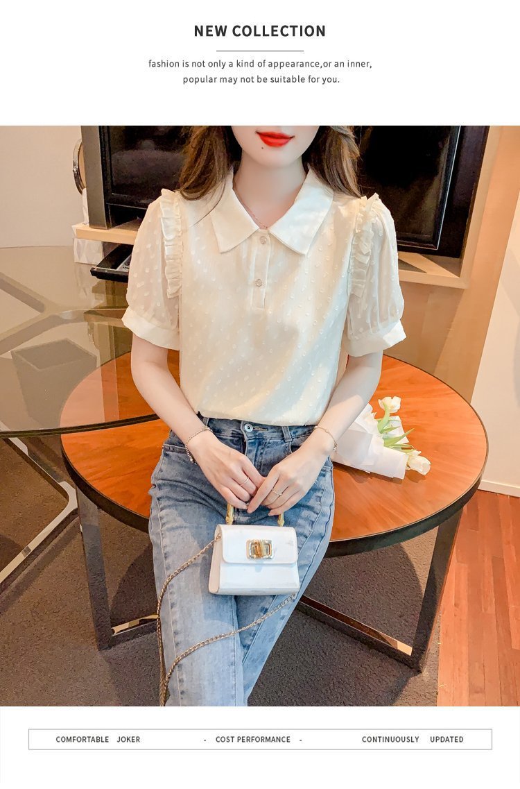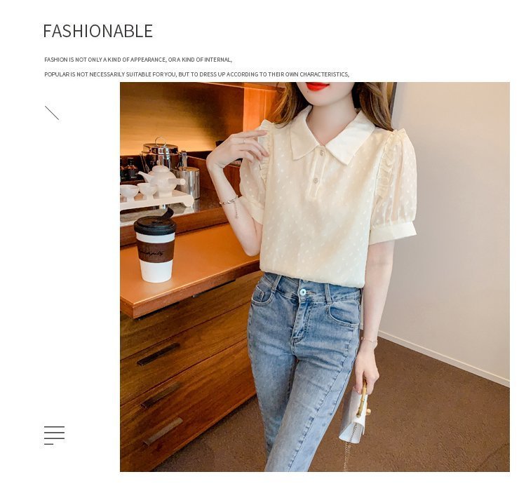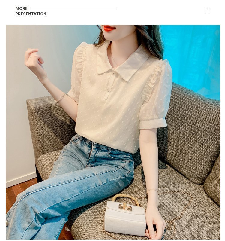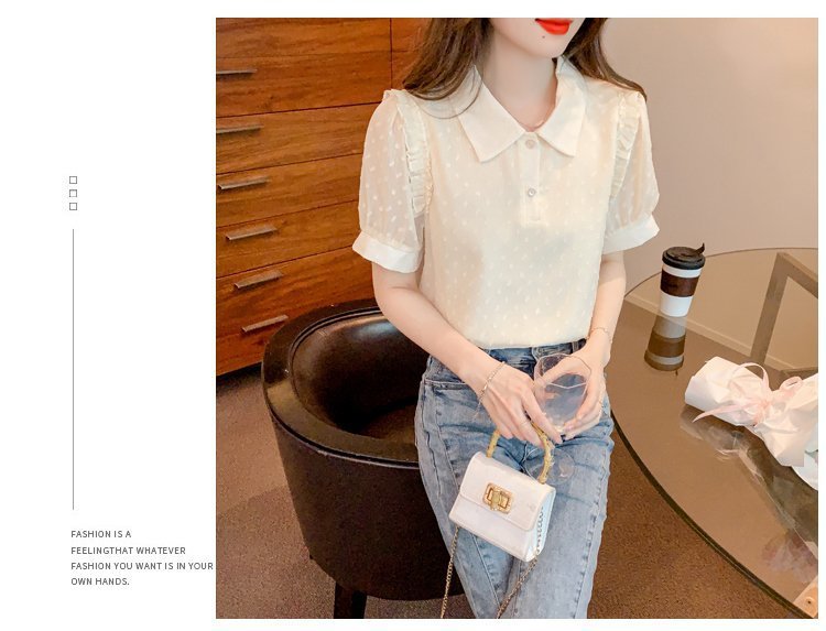 기질 폴로 칼라 짧은 소매 쉬폰 셔츠 여성 여름 2025 년 여름 새로운 디자인 감각 틈새 셔츠 탑스토어 가기