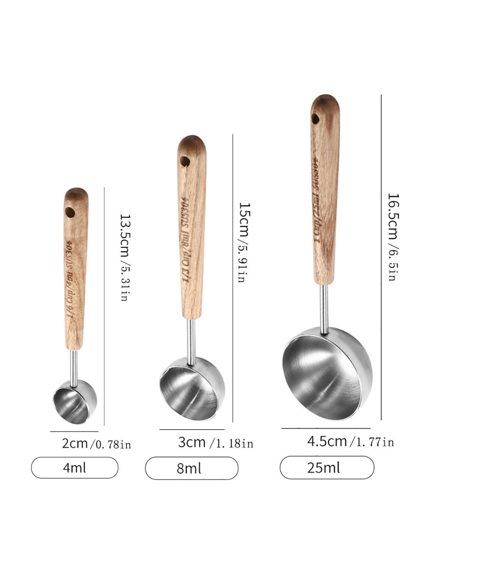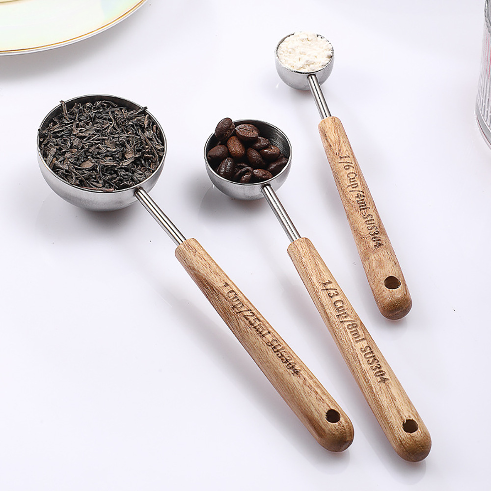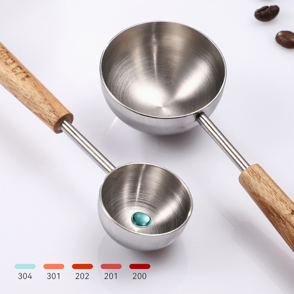 304 스테인레스 스틸 Fraken 목재 두꺼운 모래 고리 숟가락 먹이기 숟가락 약 분말 계량 스푼 커피 콩 국경 간 숟가락