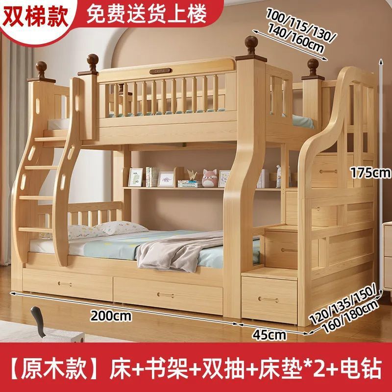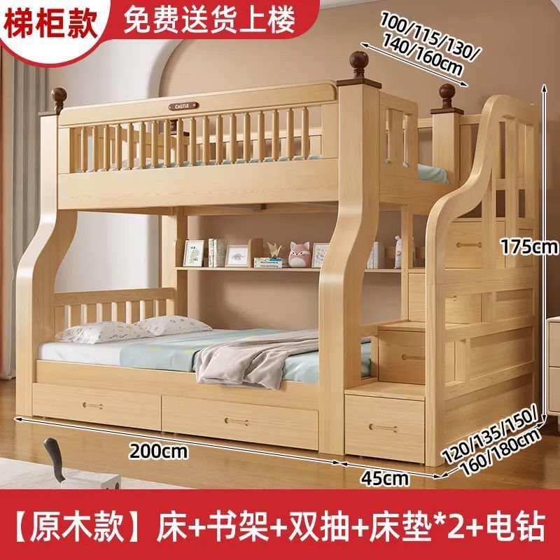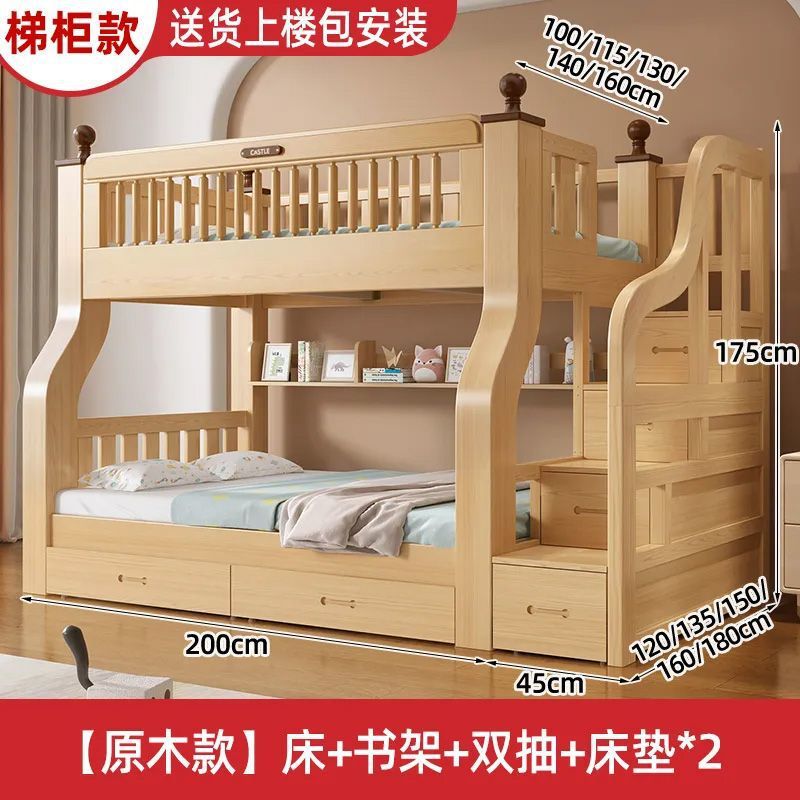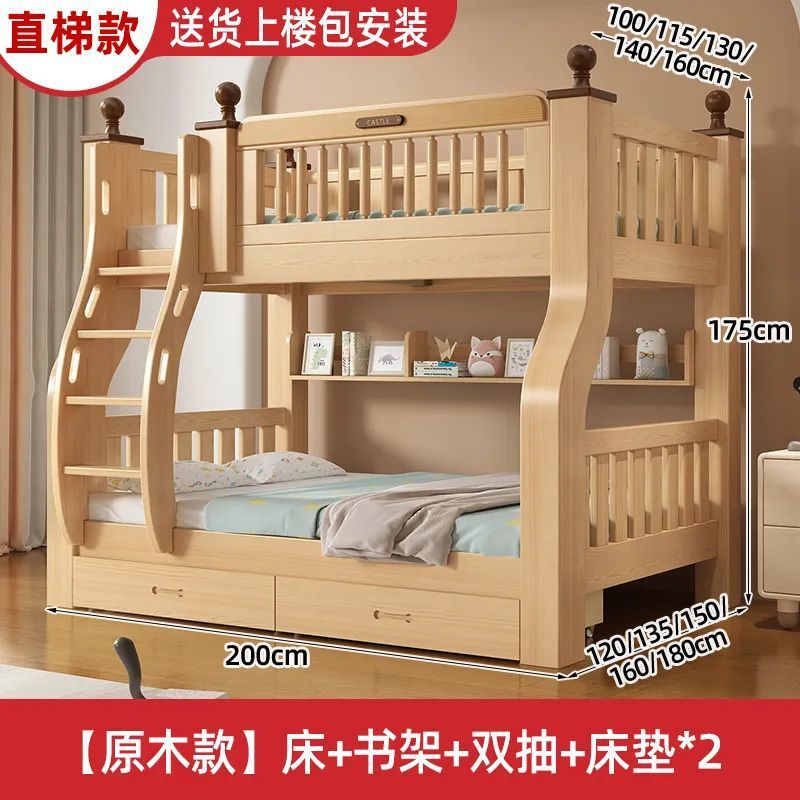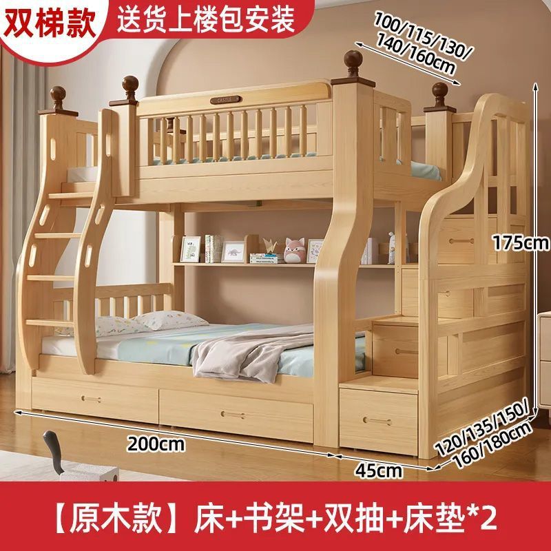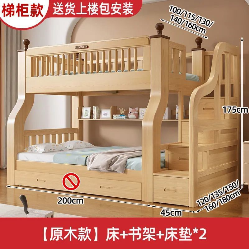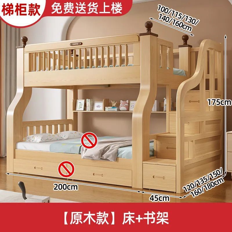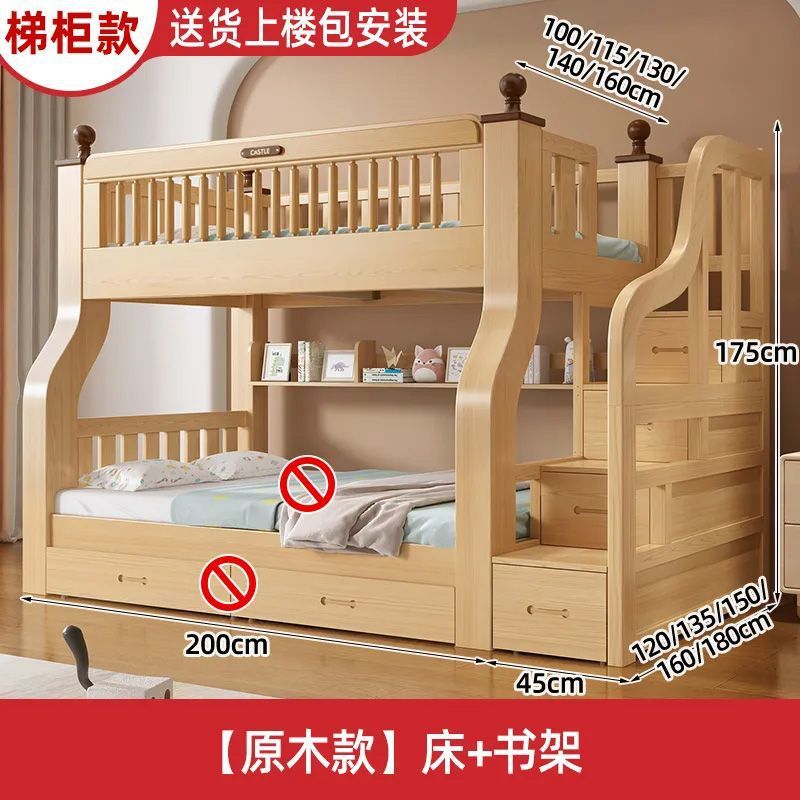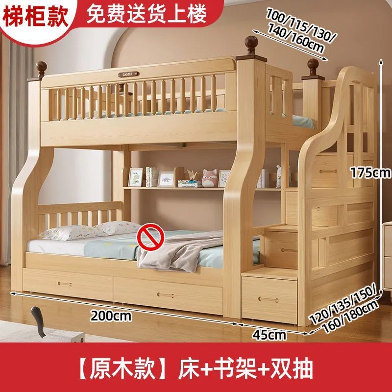 이층 침대 이층 침대 단단한 나무 침대 침대 침대 높고 낮은 침대 다기능 조합 어린이 침대 2 층 어머니 침대 나무 침대