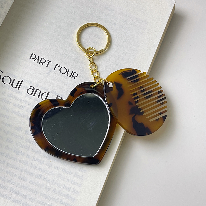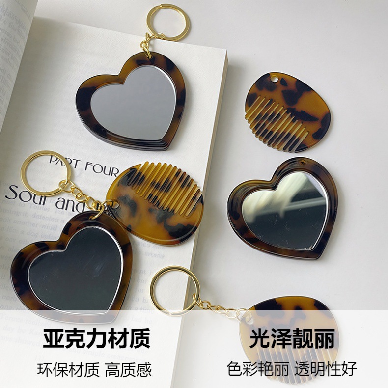 새로운 국경 사랑 거울 빗 키 체인 펜던트 창조적 인 귀여운 소녀 메이크업 거울 앞머리 빗 액세서리스토어 가기