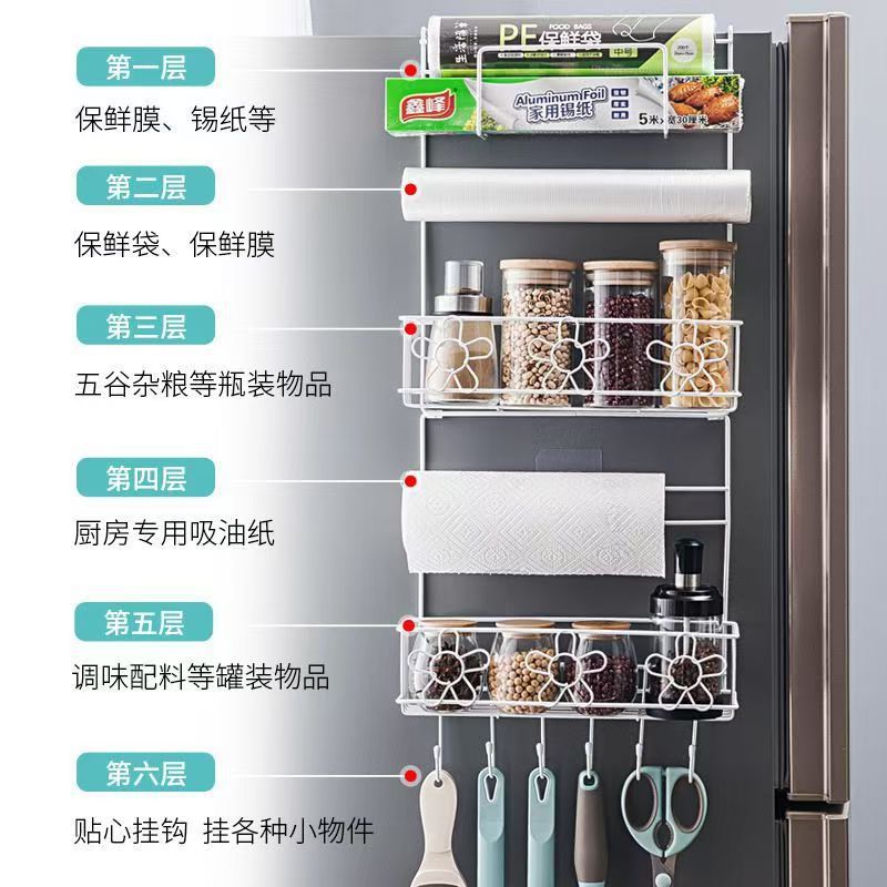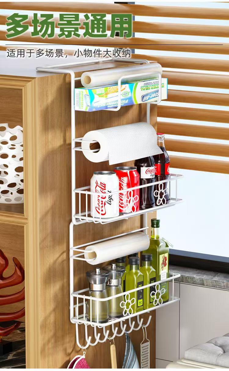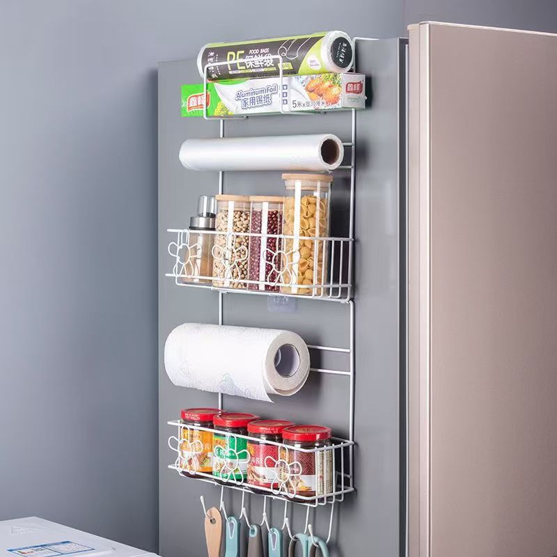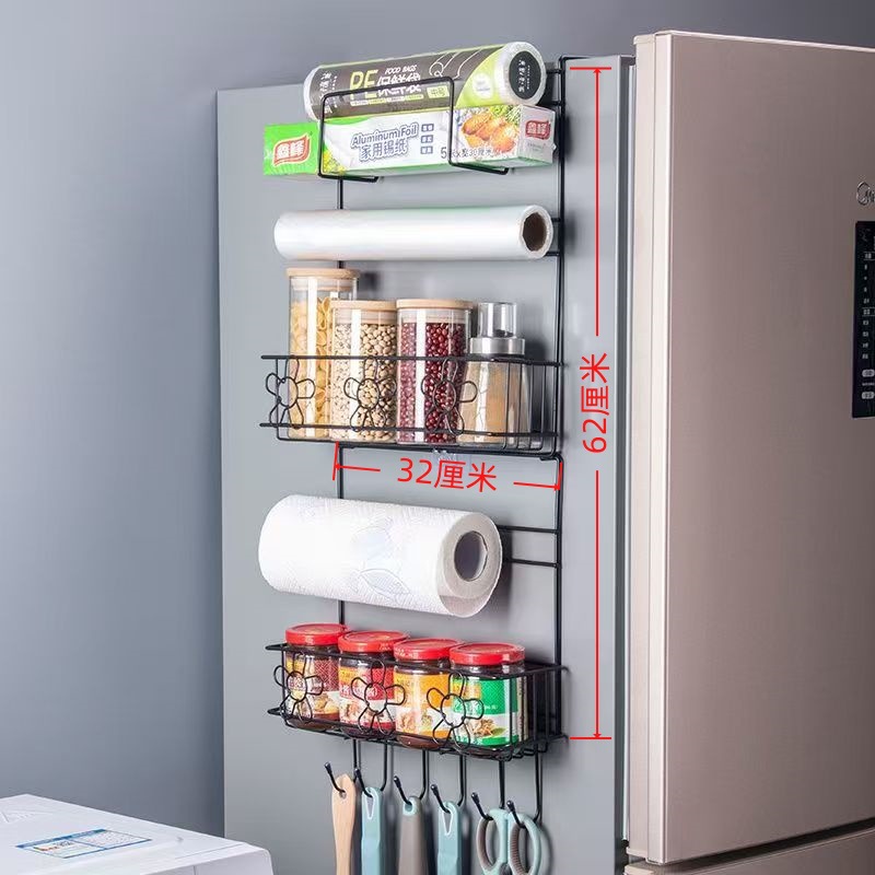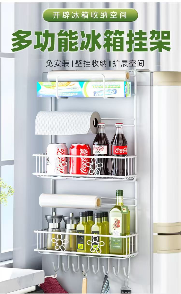 냉장고 선반 주방 수납 선반 벽걸이형 가정용 다기능 다층 조미료 용품 랩 홀더 철제