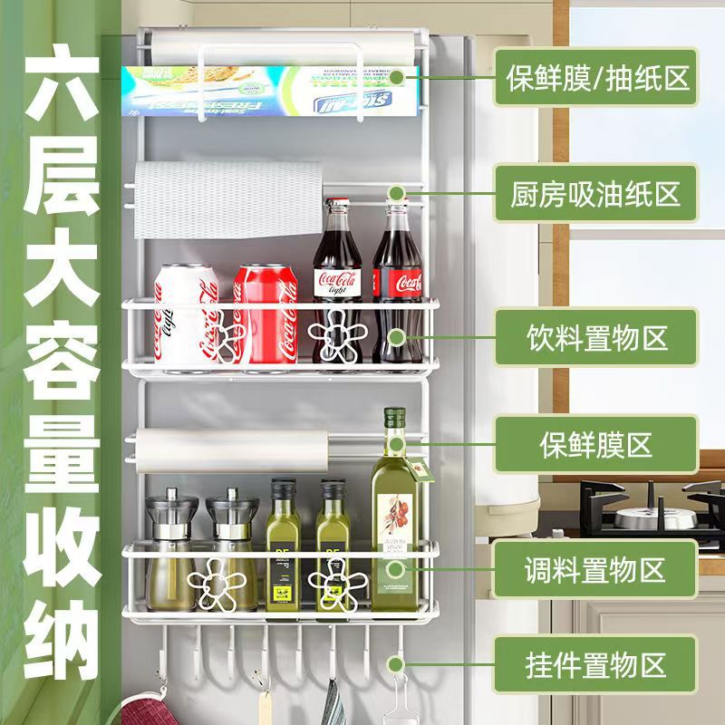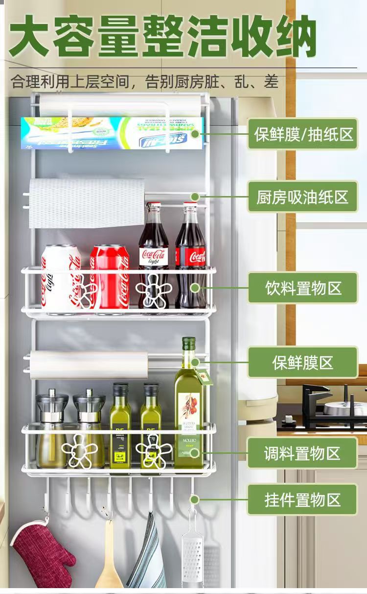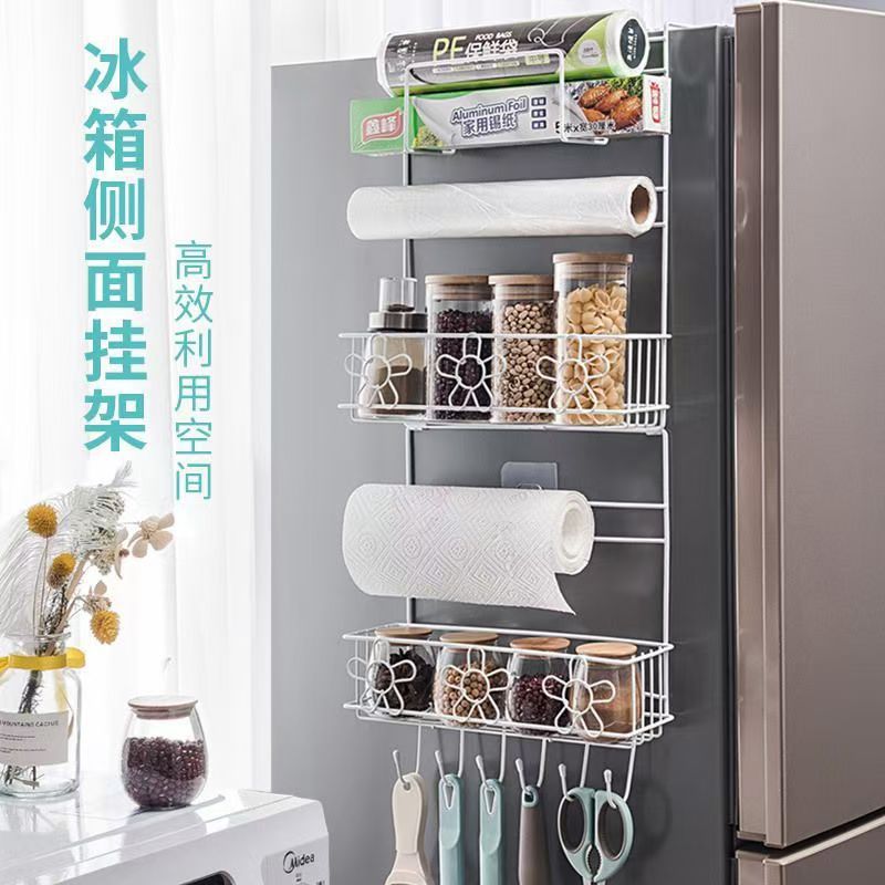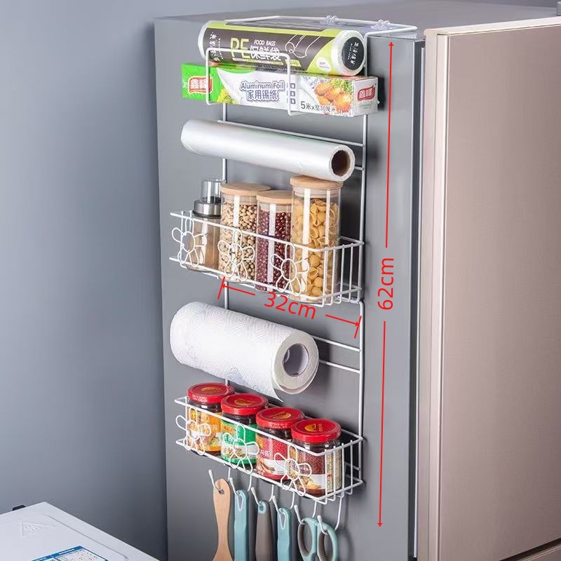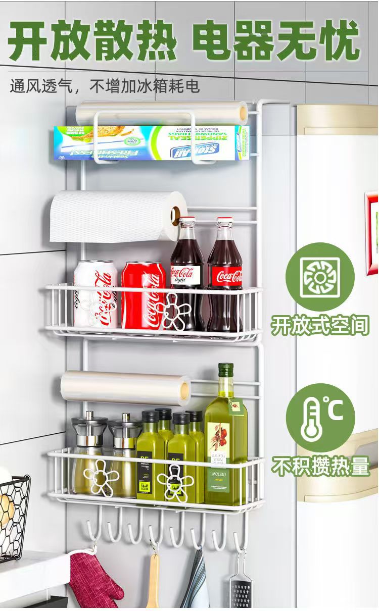 냉장고 선반 주방 수납 선반 벽걸이형 가정용 다기능 다층 조미료 용품 랩 홀더 철제