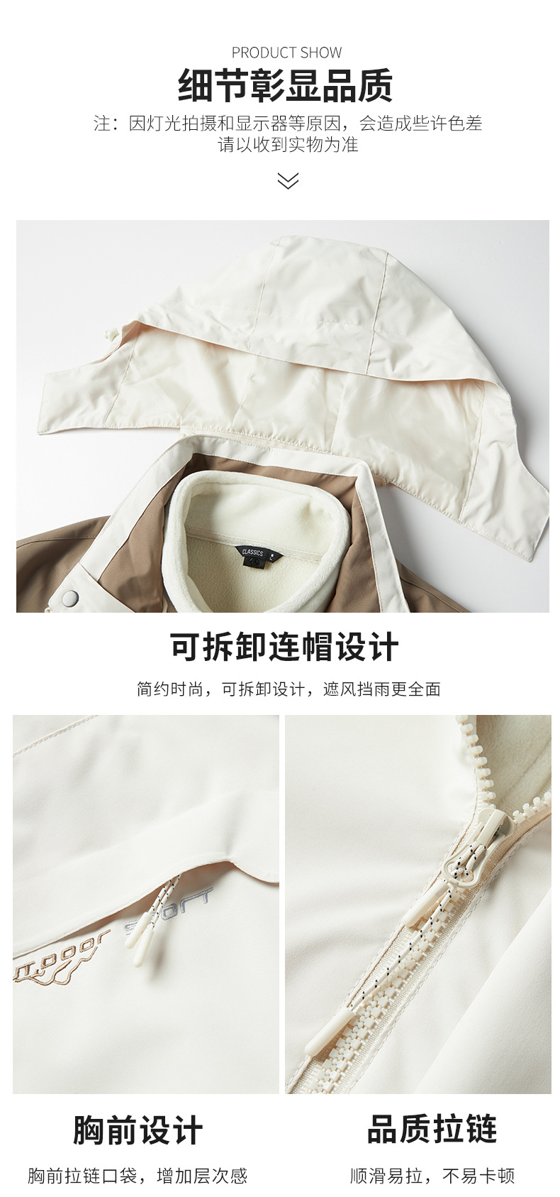 새로운 야외 패션 캐주얼 스포츠 커플의 재킷 컬러 매칭 이동식 캡 방수 등산 3 대 1 재킷스토어 가기