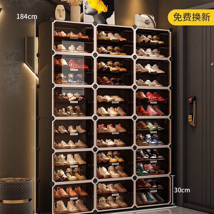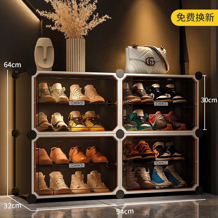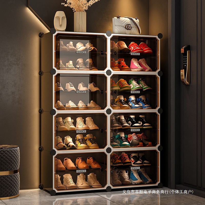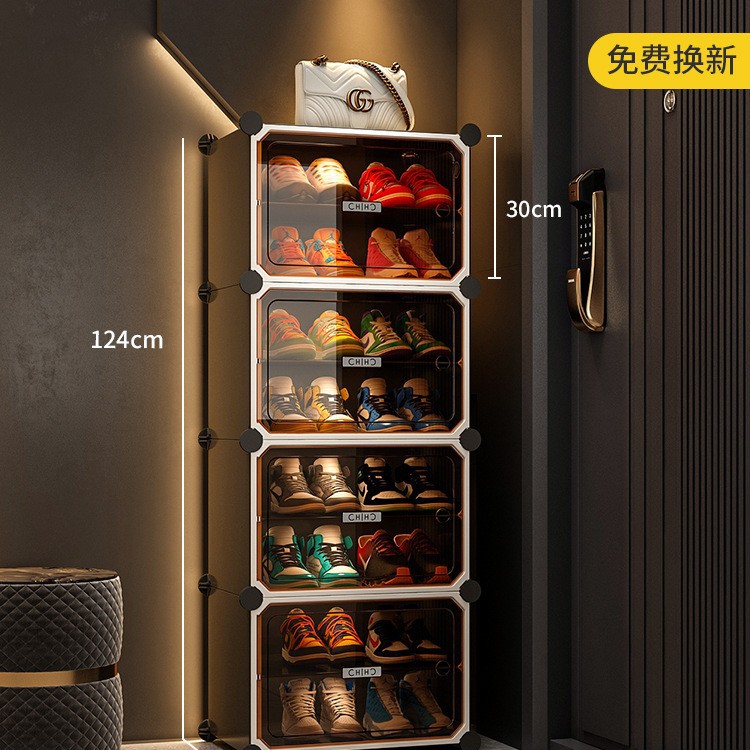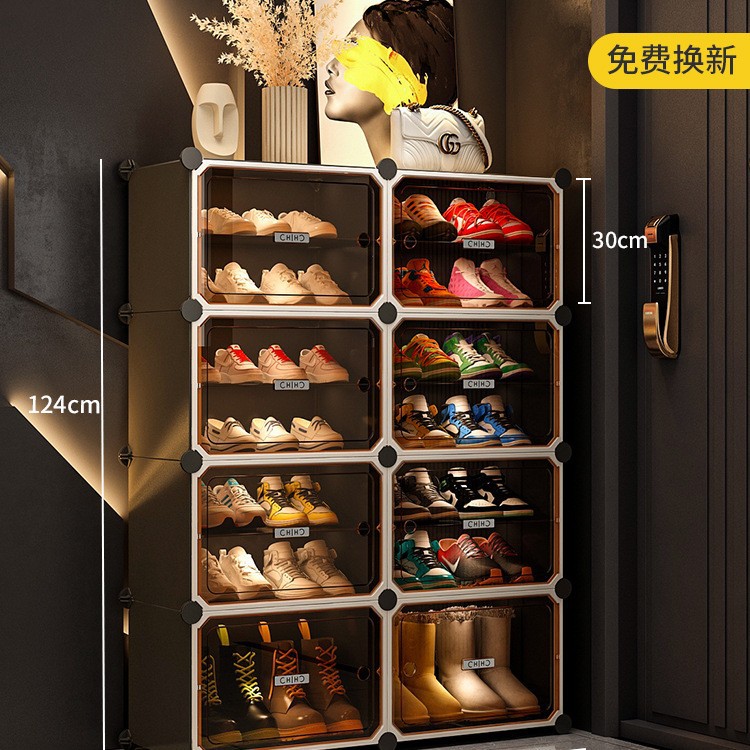 • [라이트 럭셔리 티스루 도어] 1열 넓히기, 8단, 8그리드 그레이 - 16켤레의 신발을 보관할 수 있어 집안 인테리어에 잘 어울립니다.