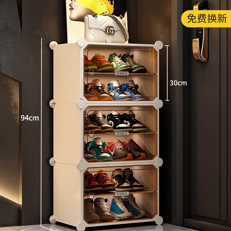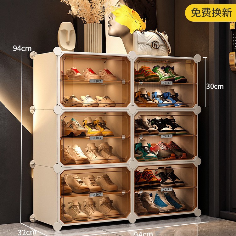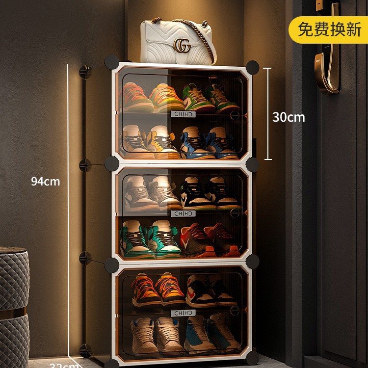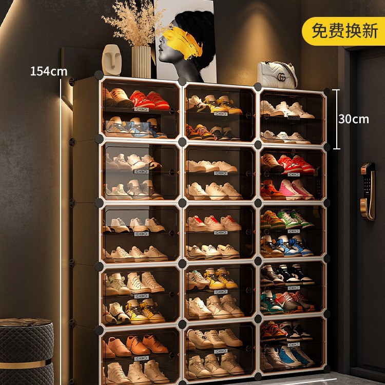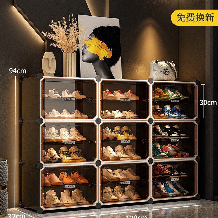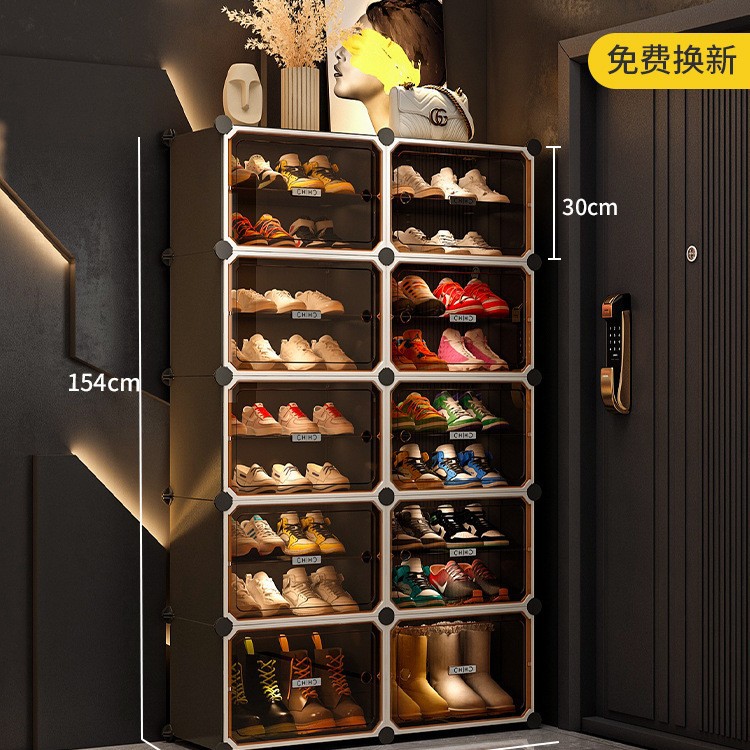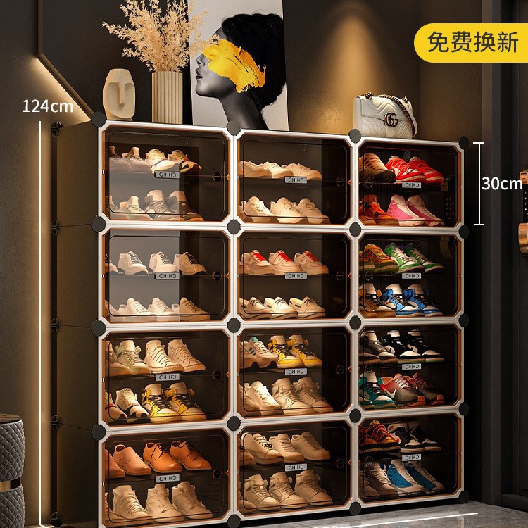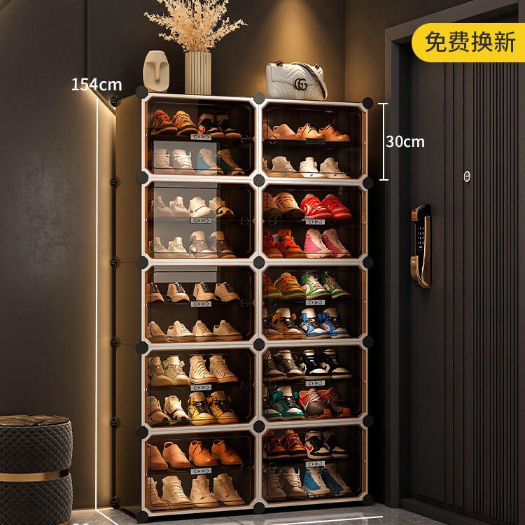 • [라이트 럭셔리 티스루 도어] 1열 넓히기, 10겹, 10그리드 그레이 - 신발 20켤레 공간 절약 및 다층 가능