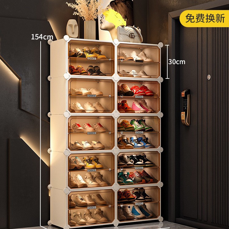 • [라이트 럭셔리 티스루 도어] 넓어진 2열, 10겹, 20칸, 흰색, 방습, 관리 용이, 신발 40켤레 수납 가능