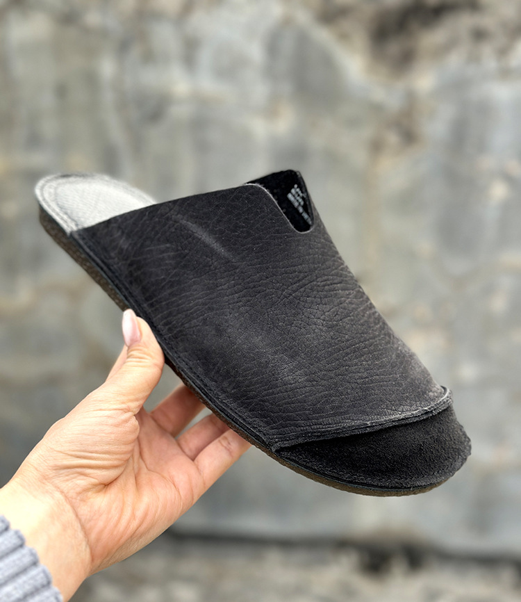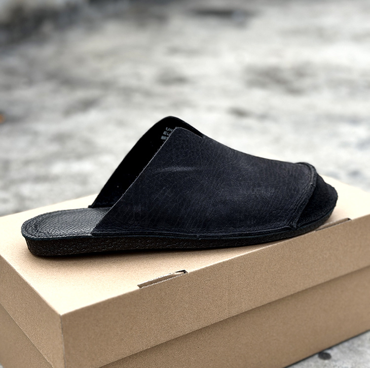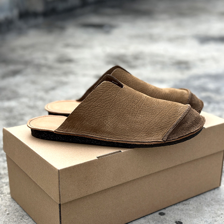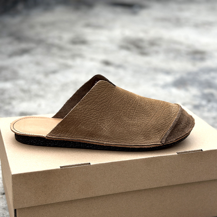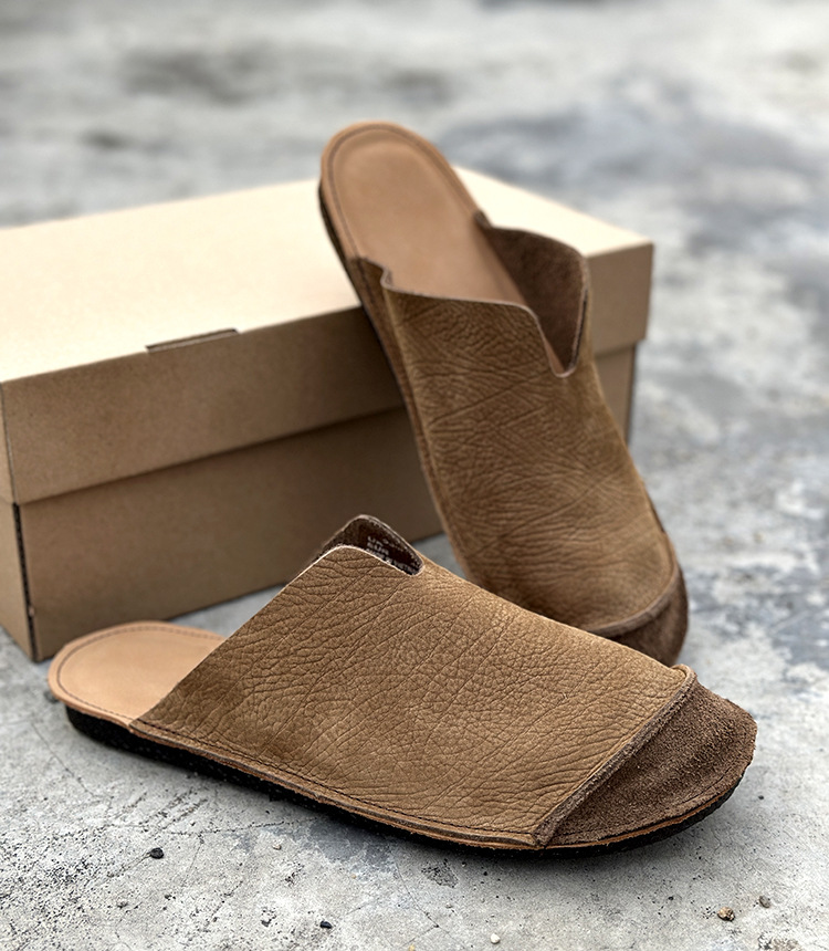대외 무역 정품 가죽 통기성 외부 발가락 반 슬리퍼 남성용 부드럽고 가벼운 1 층 소 가죽 복고풍 다용도 실내 슬리퍼