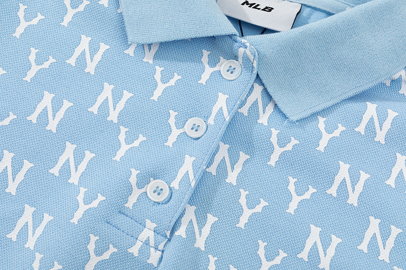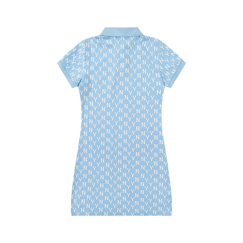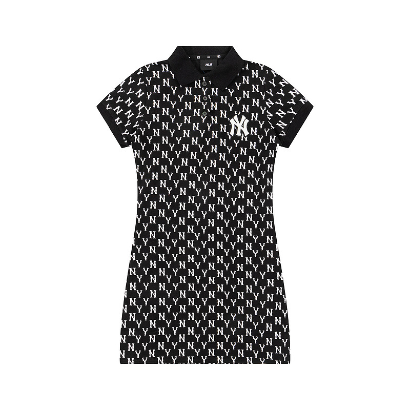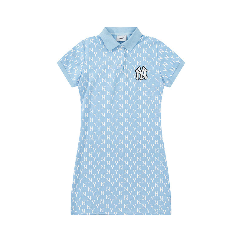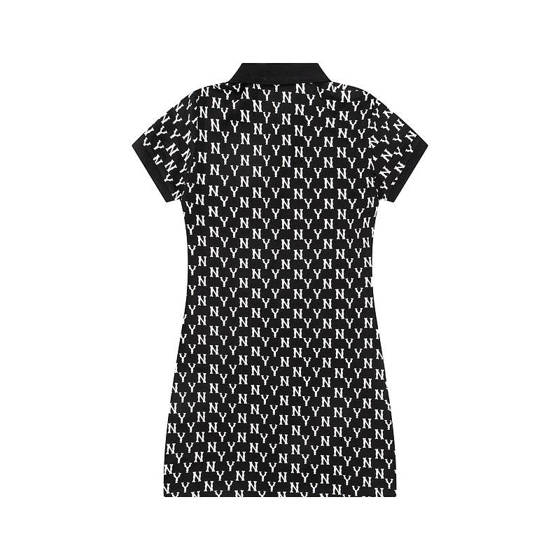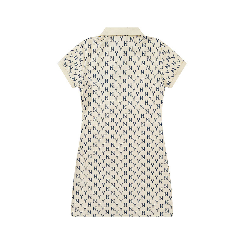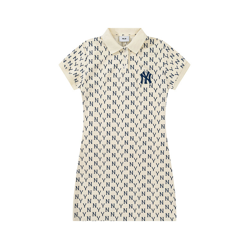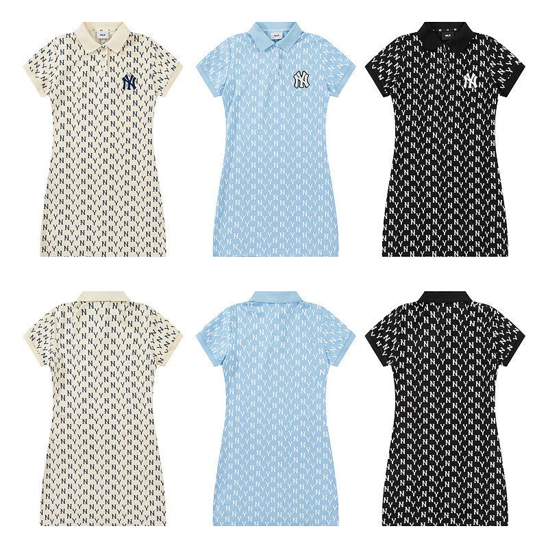 올바른 MLB 패션 브랜드 NY 전체 인쇄 장로교 폴로 칼라 봄과 여름 캐주얼 올 매치 옷깃 긴 원피스 여성스토어 가기