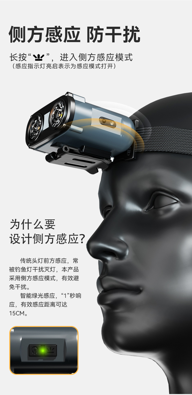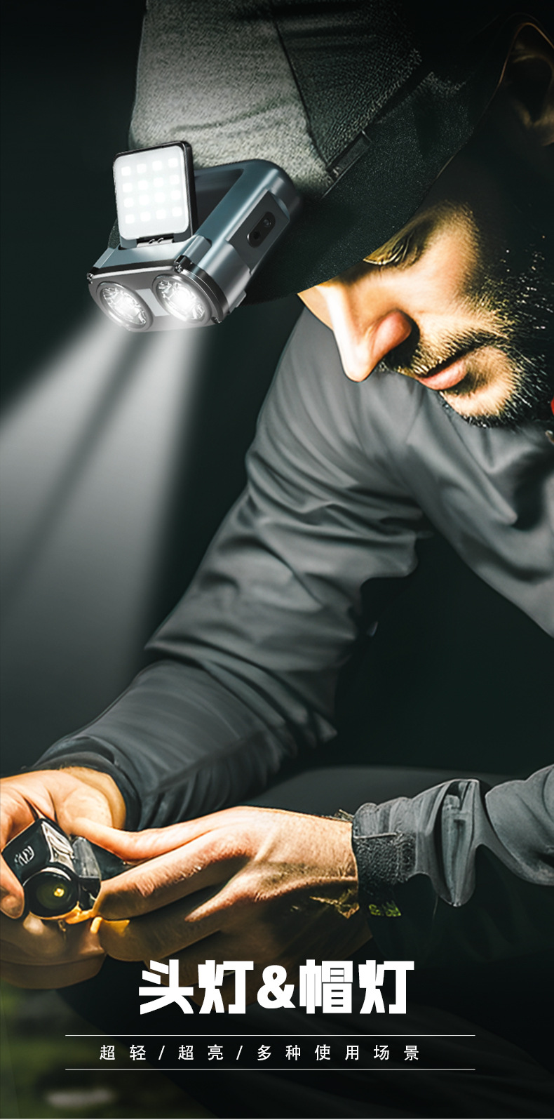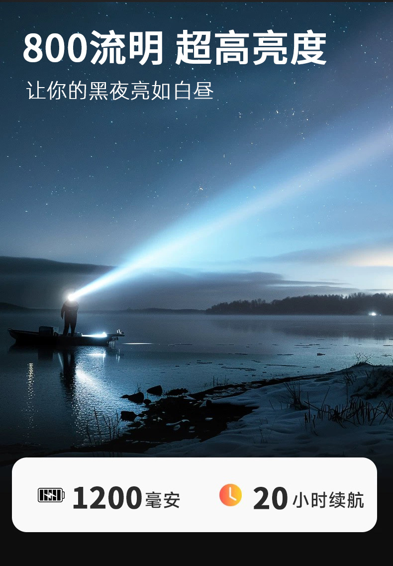 WARS 올빼미 헤드램프, 강한 빛, 매우 밝은 야간 낚시용 헤드 장착형 센서 충전식, 긴 배터리 수명, 모자 클립 램프