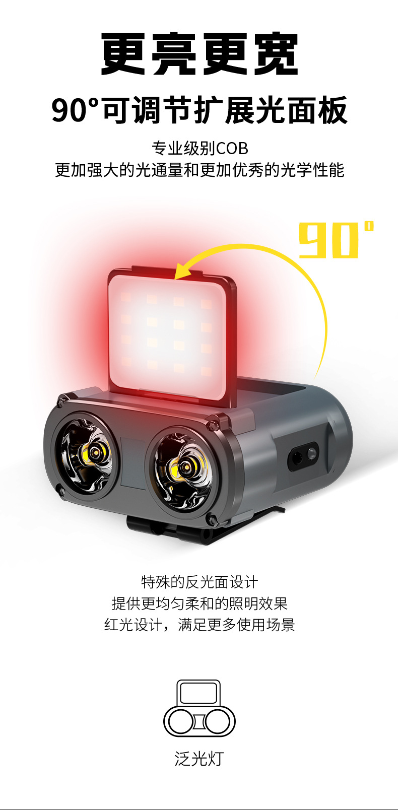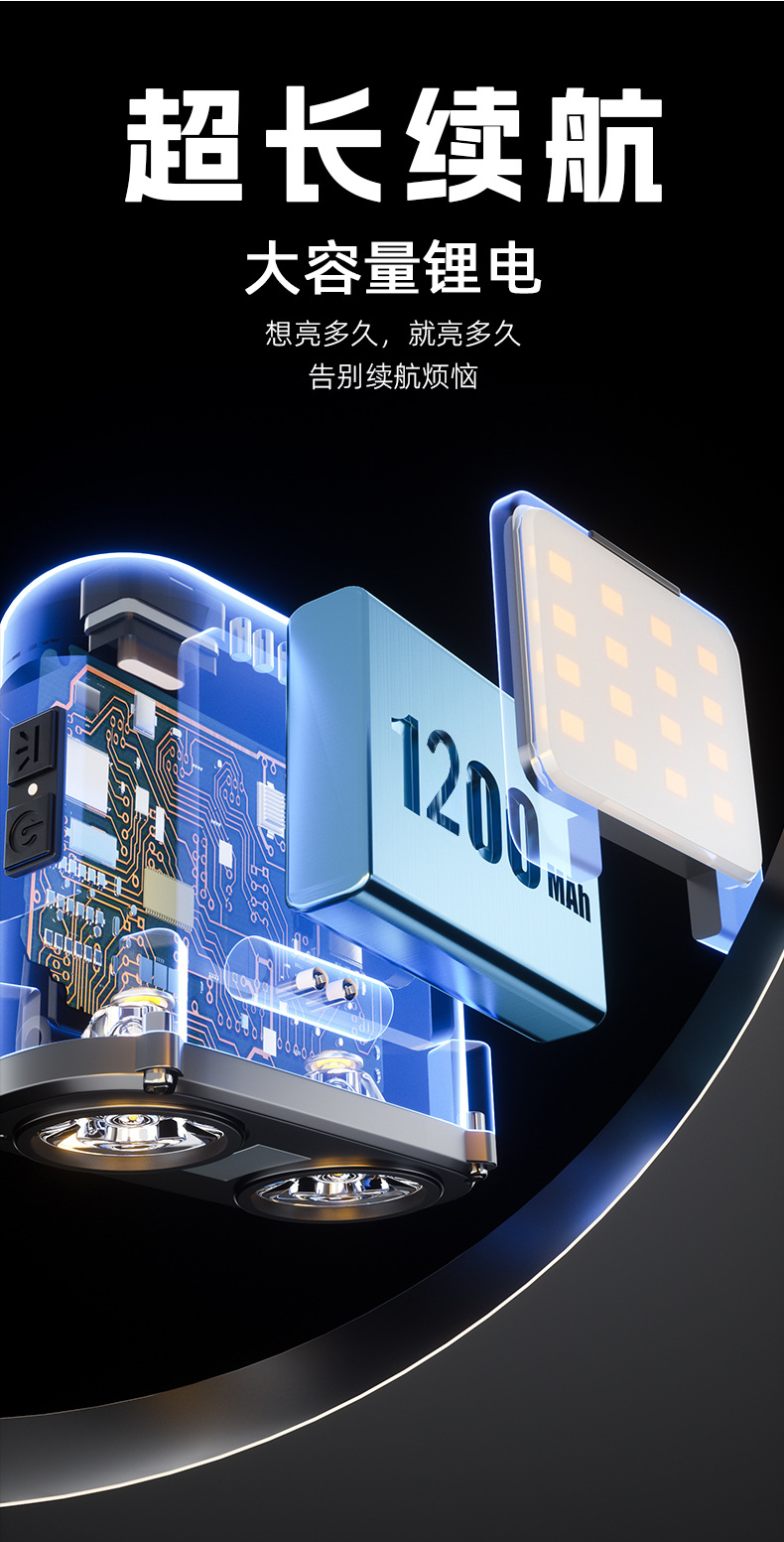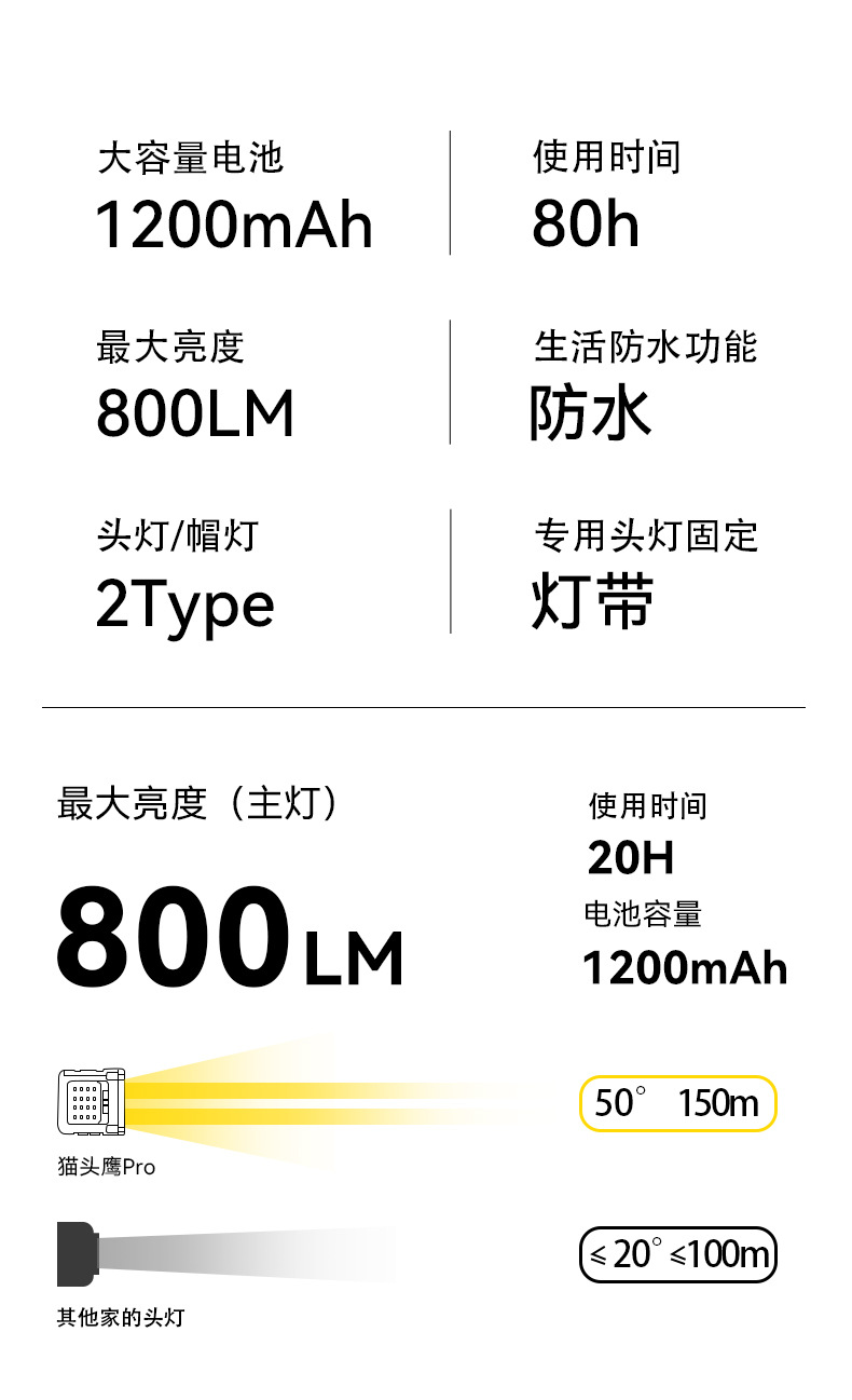WARS 올빼미 헤드램프, 강한 빛, 매우 밝은 야간 낚시용 헤드 장착형 센서 충전식, 긴 배터리 수명, 모자 클립 램프