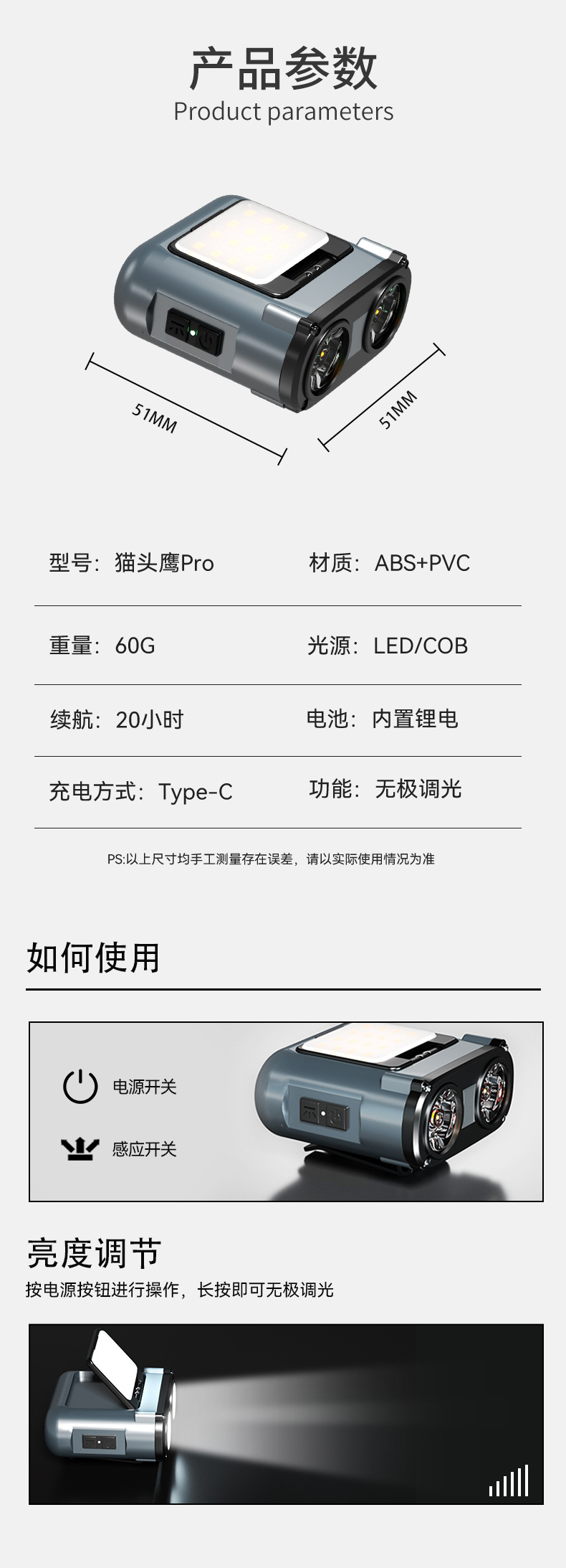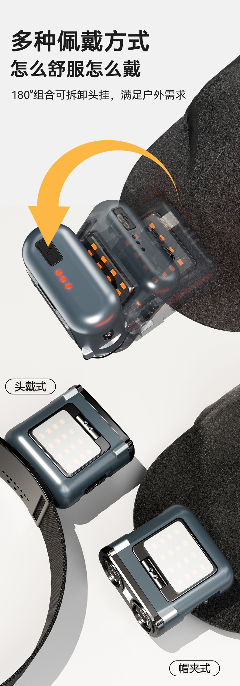 WARS 올빼미 헤드램프, 강한 빛, 매우 밝은 야간 낚시용 헤드 장착형 센서 충전식, 긴 배터리 수명, 모자 클립 램프스토어 가기